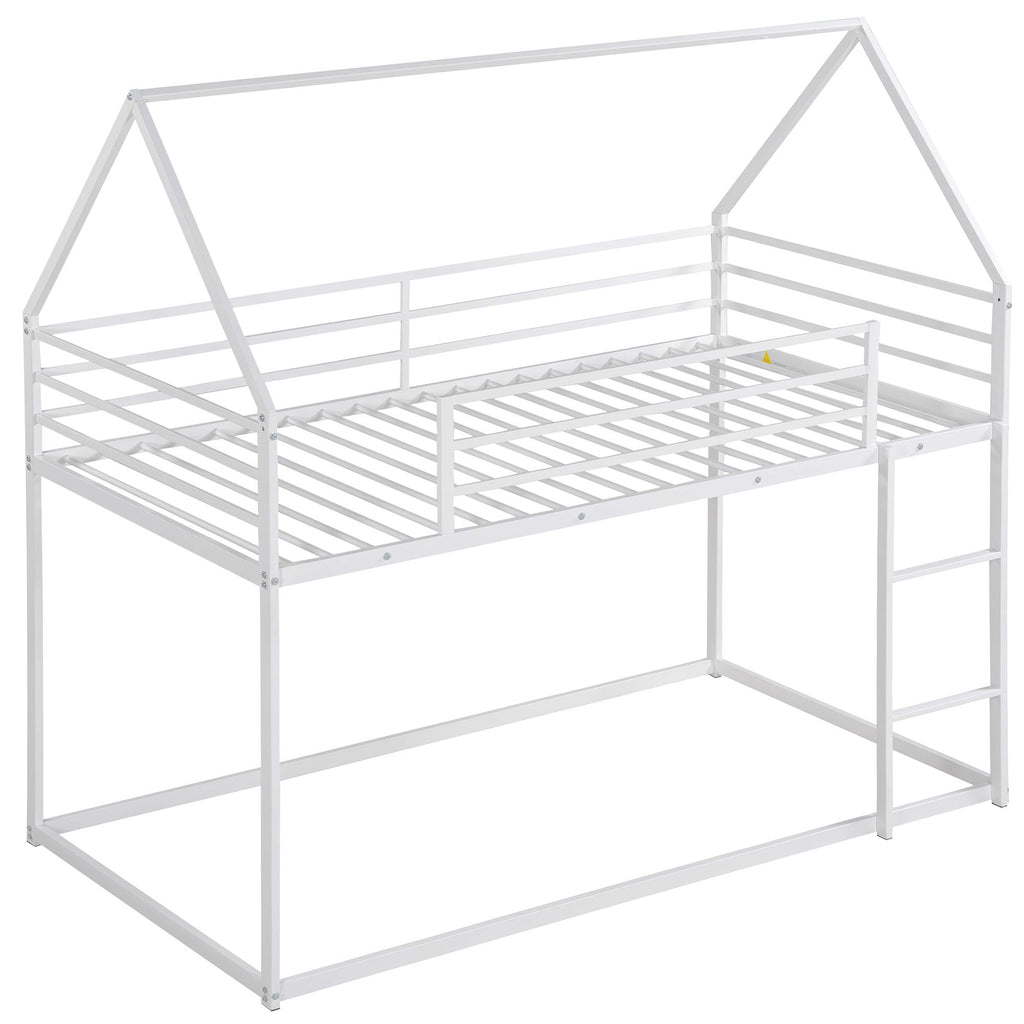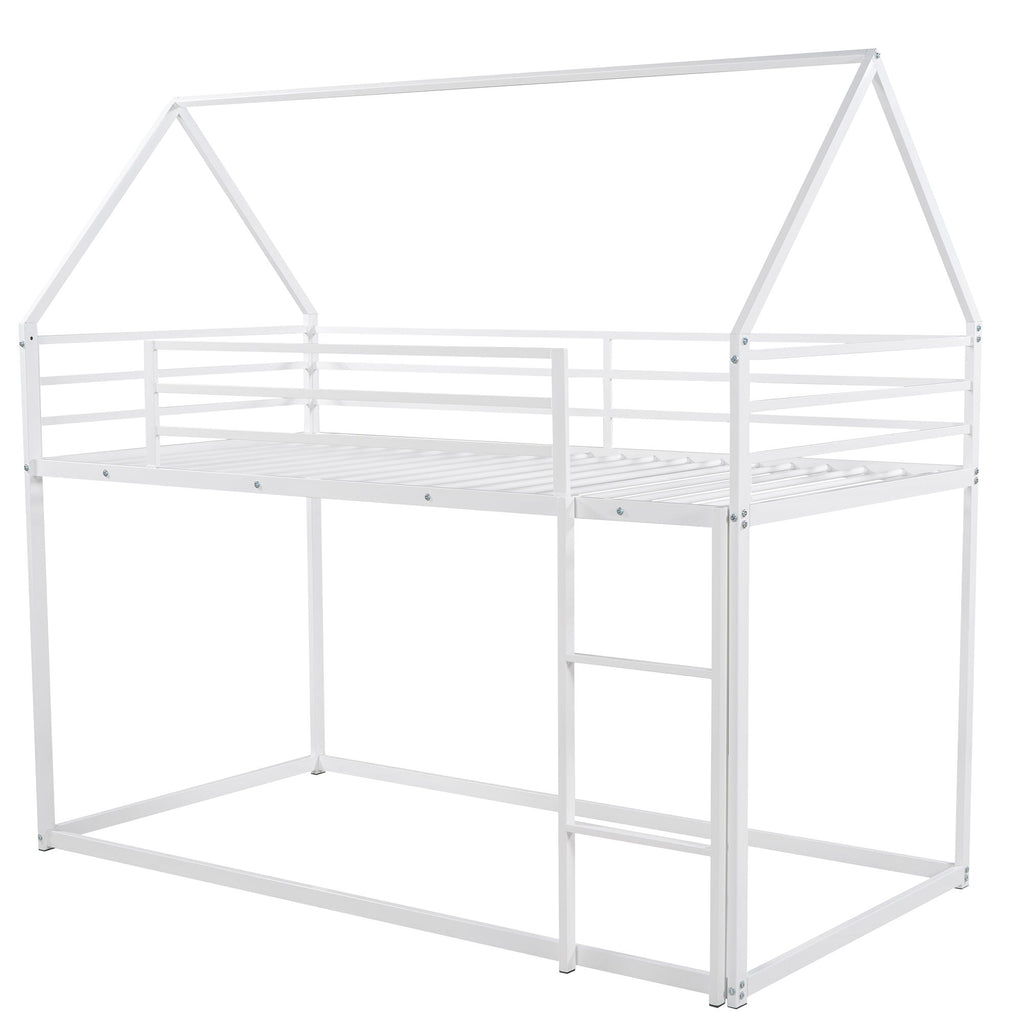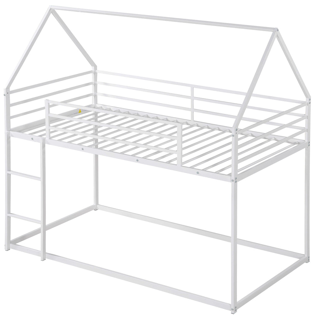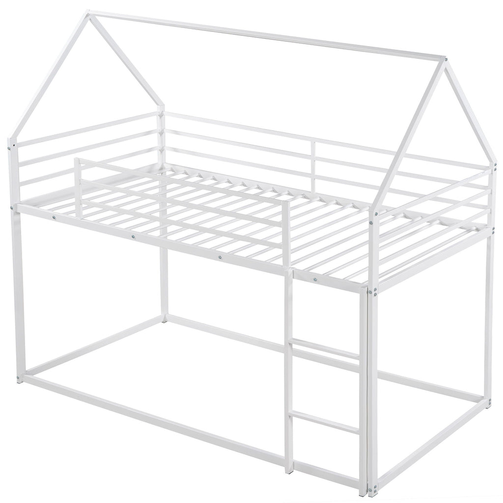 Twin Over Twin House Bunk Bed With Built In Ladder - White