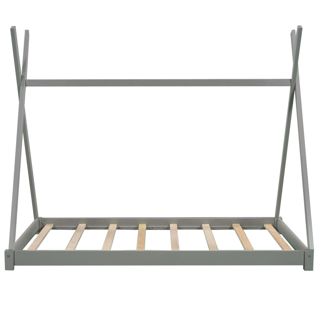 Twin Size House Platform Bed With Triangle Structure - Gray