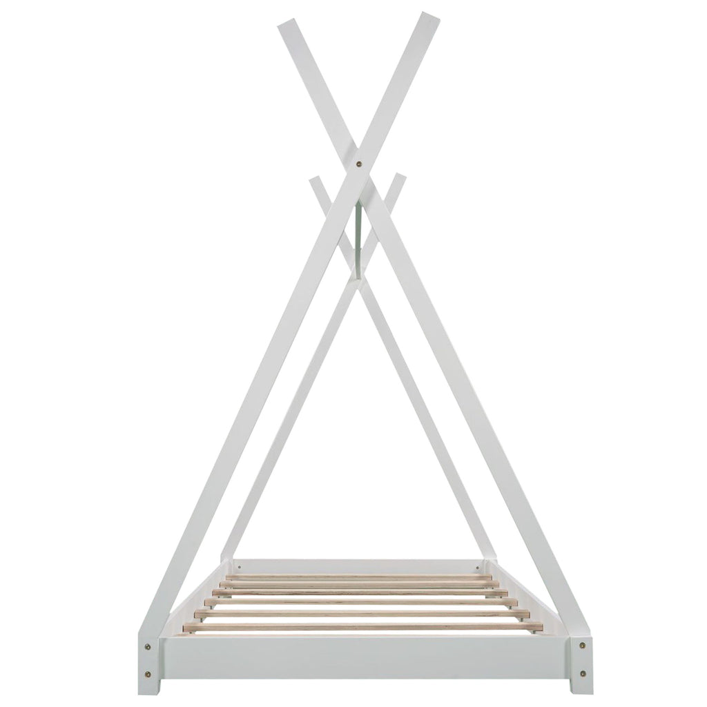 Twin Size House Platform Bed With Triangle Structure - White
