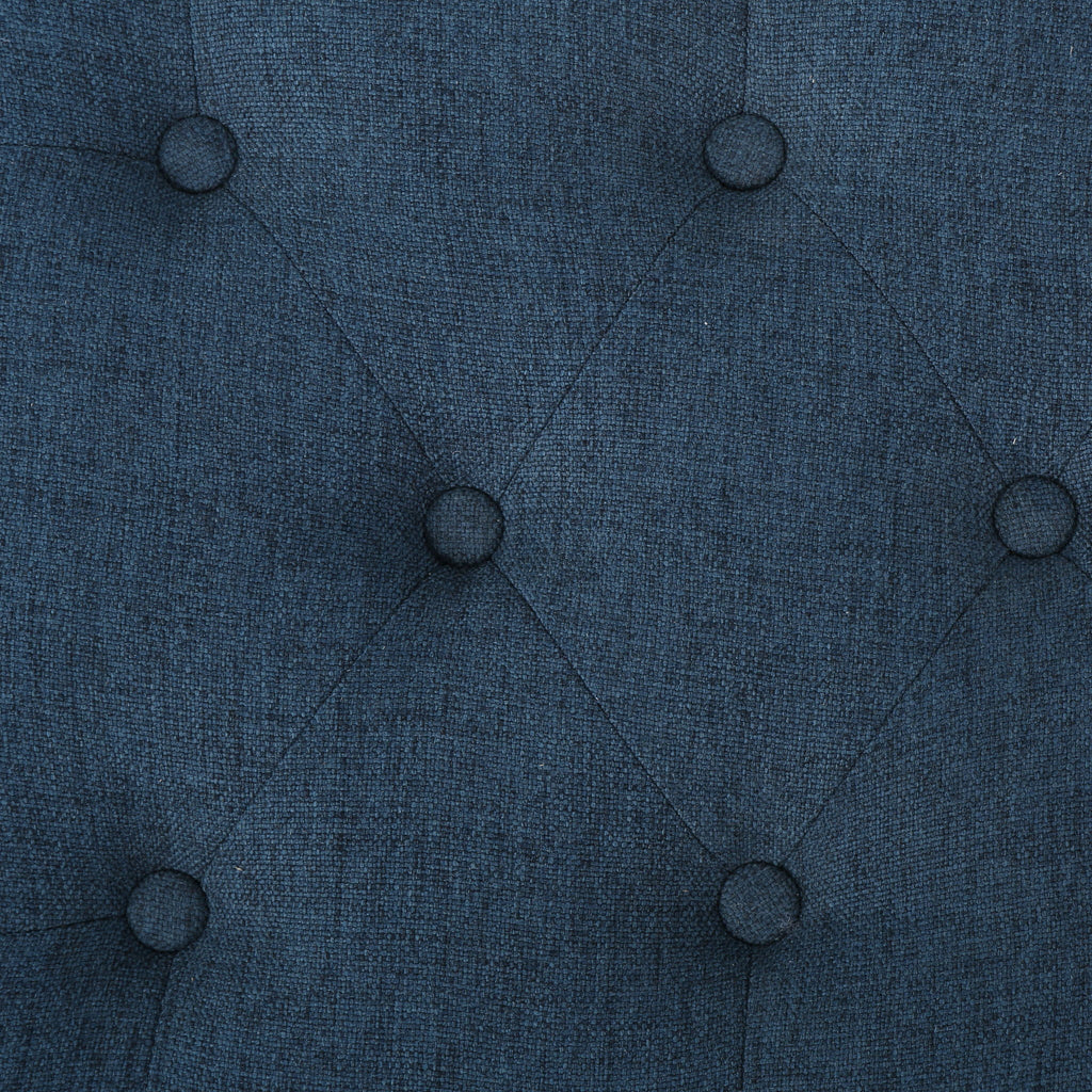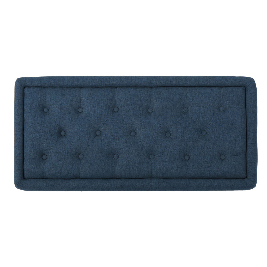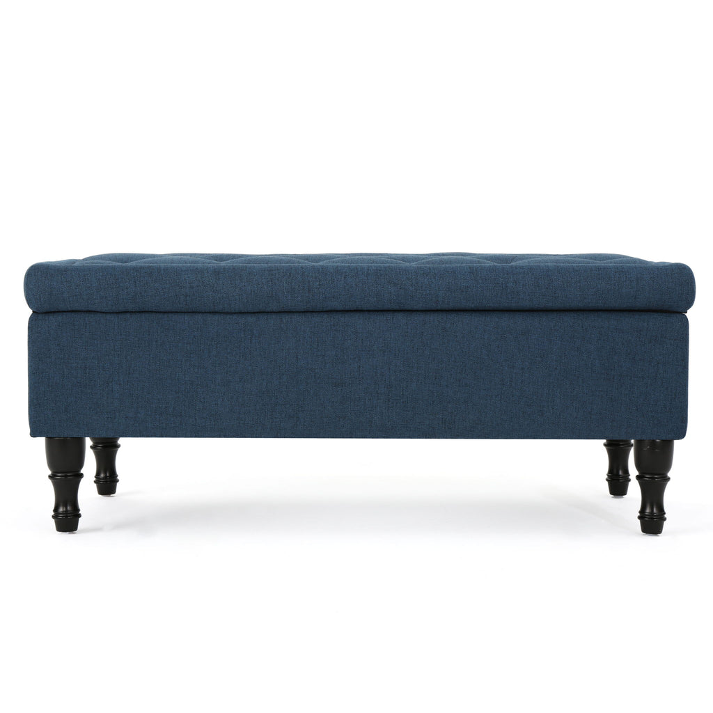 Hyatt - Suede Storage Ottoman With Tufted Top And Dark Wooden Legs - Navy Blue