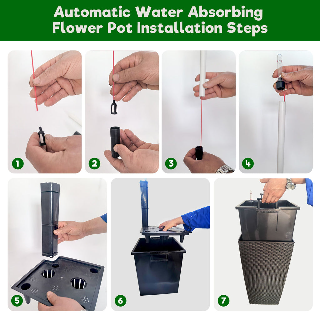 Elegant Square Planter With Automatic Watering System, Faux Rattan Design, Polypropylene (Set of 2) - Black
