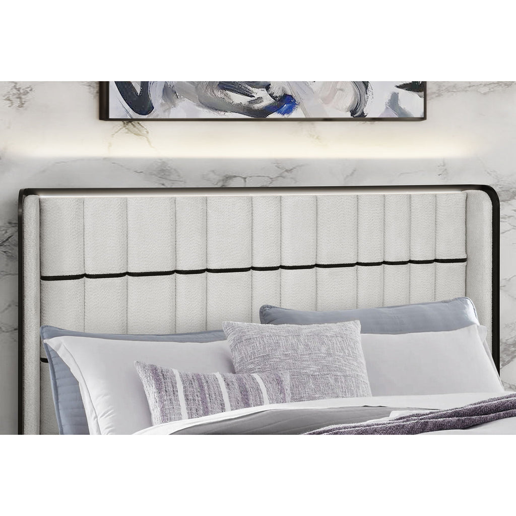 Isaiah - Queen Bed With 50" TV Lift LED, Speakers And Fireplace - White / Black