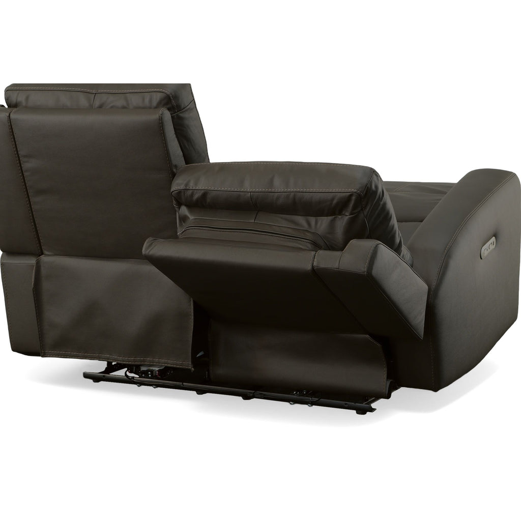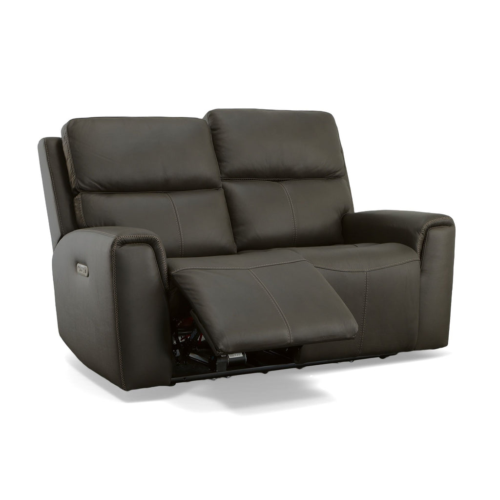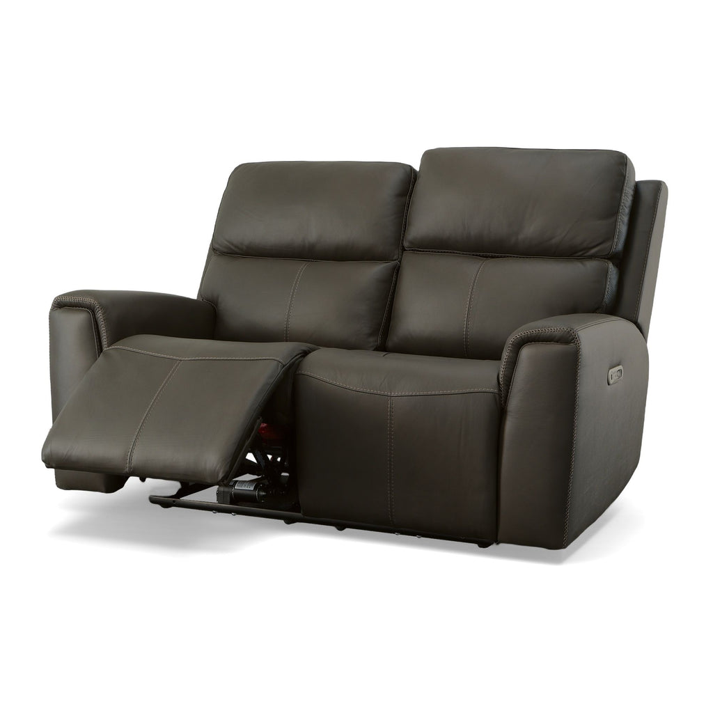 Make your me time even more relaxing with the Jarvis leather power reclining loveseat with power headrests. You and your family will enjoy lounging in this contemporary reclining loveseat, which packs a punch when it comes to ergonomic features. Zero Gravity recline technology gives you a feeling a weightlessness, while Flexsteel's patented Blue Steel Spring™ provides lasting support. You can even adjust the headrests and recline independently using power controls on either side of the loveseat and charge your devices with the built-in USB ports. Add a sleek aesthetic and refined design details to the mix, and you’ve got a loveseat that you’ll enjoy for years to come.