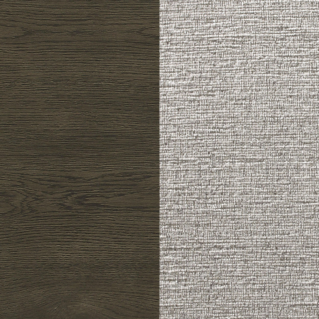 Upgrade your dining area with this chic transitional dining set, featuring a sleek dark grey finish and subtle chevron pattern on the table top. The table boasts a clean and simple trestle base design, while the chairs offer comfortable beige upholstered back and seat. The server has ample storage with three drawers and two shelves, including brown felt-lined top drawers.