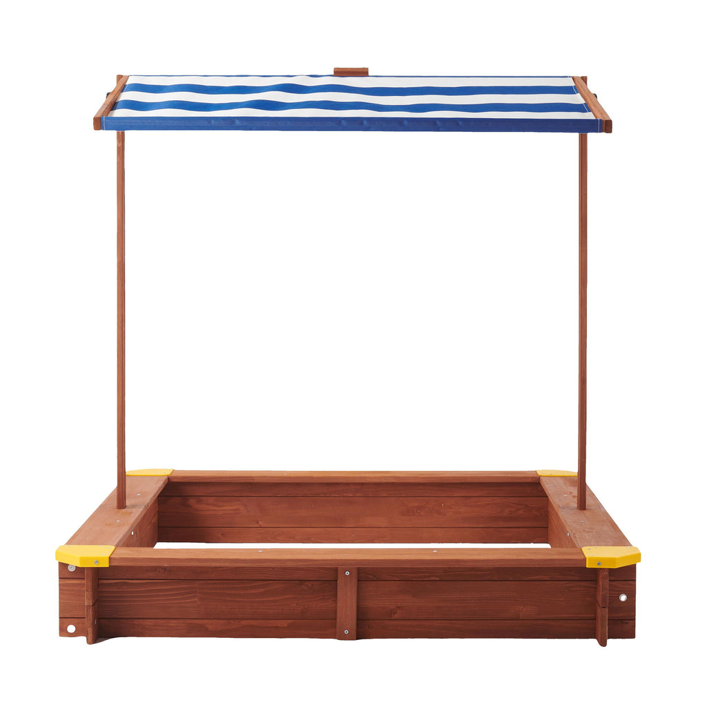 Kids Sandbox With Cover, Sand Box With Adjustable Canopy, Large Outdoor Cedar Sandpit For Backyard Play - Reddish Brown