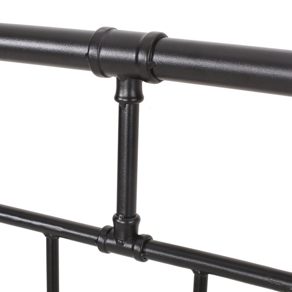 - IRON FRAME: The sturdy construction of this iron frame ensures that this headboard will hold up under heavy use. This simple look is accentuated with sleek pipe accents, adding to the industrial design of this frame.