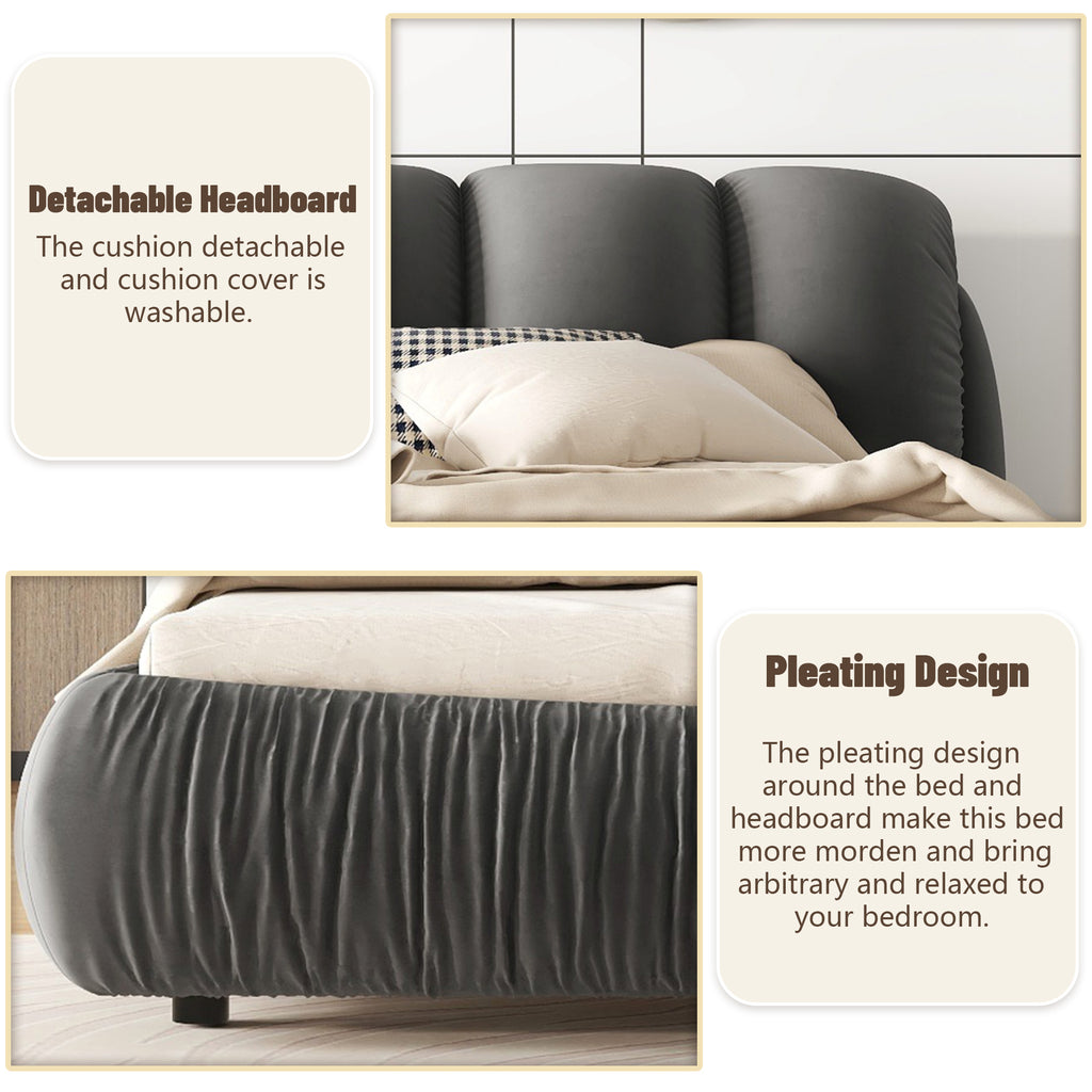 - Modern Design: Whole king upholstered bed is crafted with pleating techniques, it is 100% handmade and making the overall of King bed more a modern and chic look. The pleating design also bring arbitrary and relaxed to your bedroom.