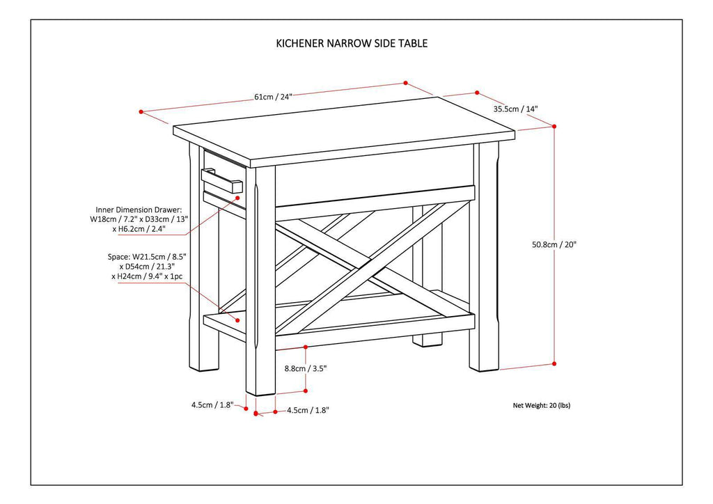 Kitchener - Narrow Side Table - Warm Walnut Brown