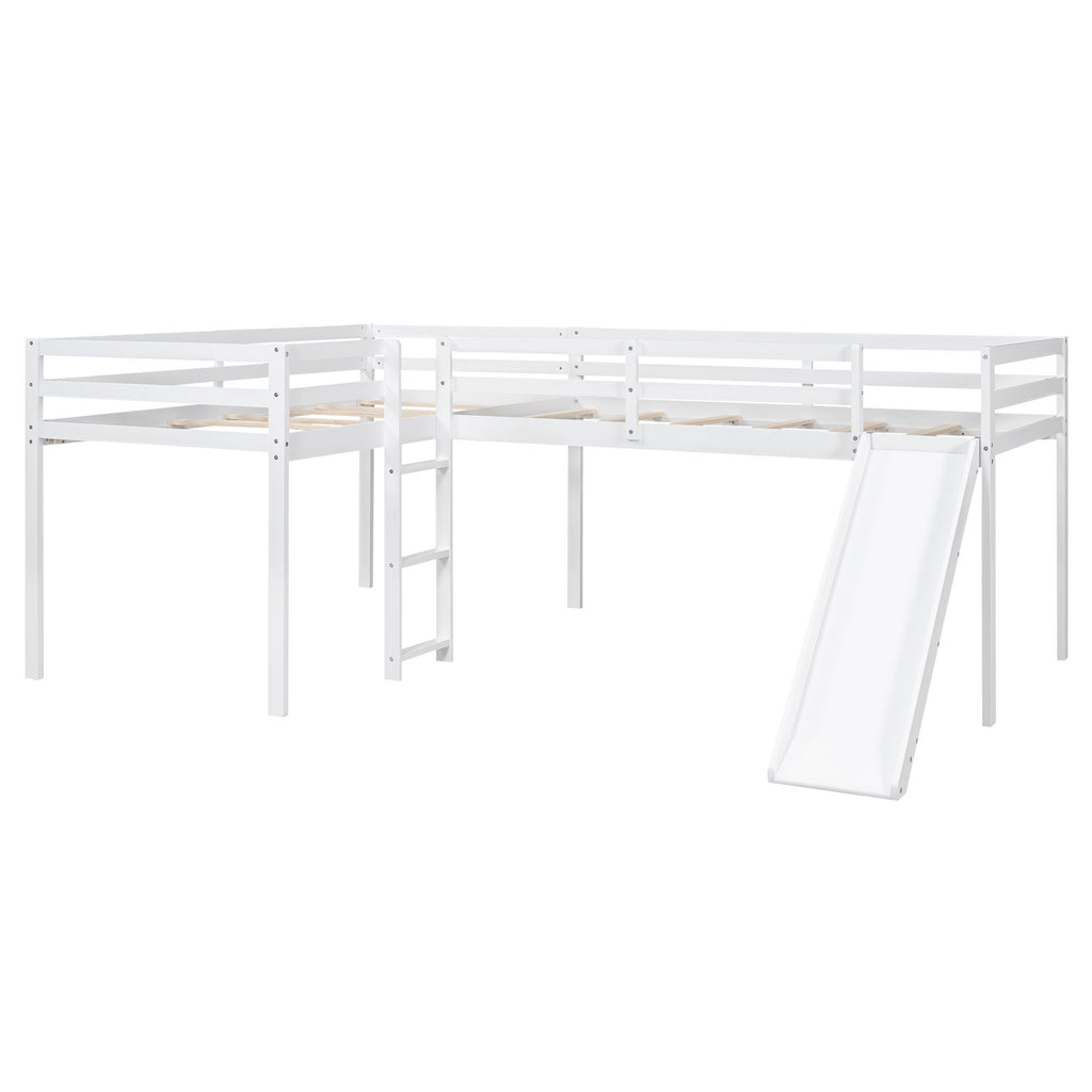 L-Shaped Twin Size Loft Bed With Ladder And Slide - White