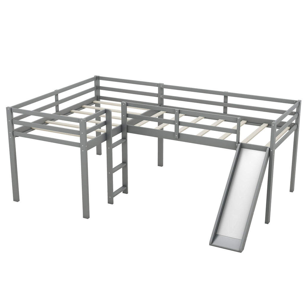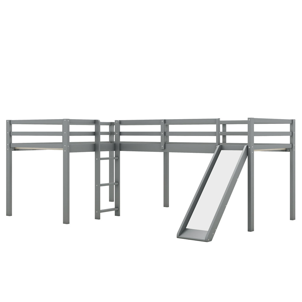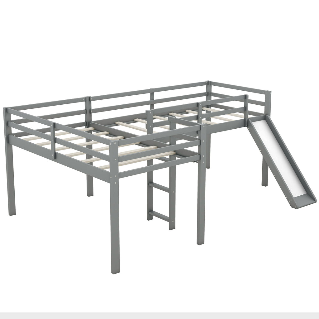 L-Shaped Twin Size Loft Bed With Ladder And Slide - Gray