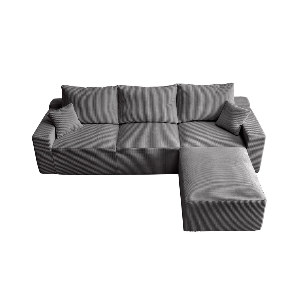 Shaped Sectional Sofa, Full Compression 3 Seater Cloud Couch With Chaise Sofa For Living Room, Ultra Soft Deep Seat Modular Sofa - Gray