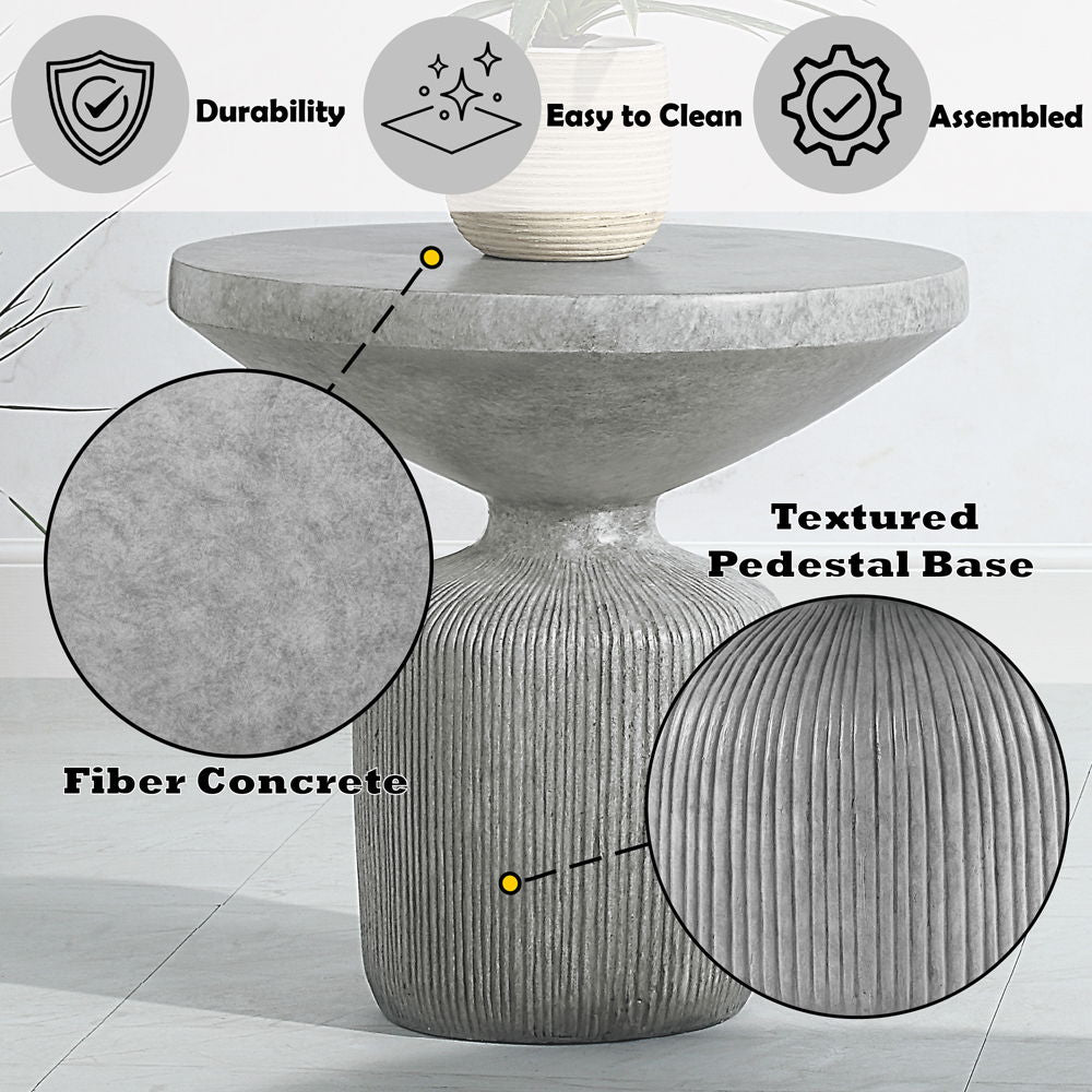 Bring the outside indoors with this nature-inspired Laddie end table. This table is constructed from cement for a stylish design choice. The table has various ranges of textures, such as a smooth tabletop and a textured base, and a rounded form for a graphic lure. With a large enough tabletop to hold a few decorative items. This end table would be a stylish and sustainable addition to any living space, demonstrating that natural elements and contemporary design can go hand in hand.