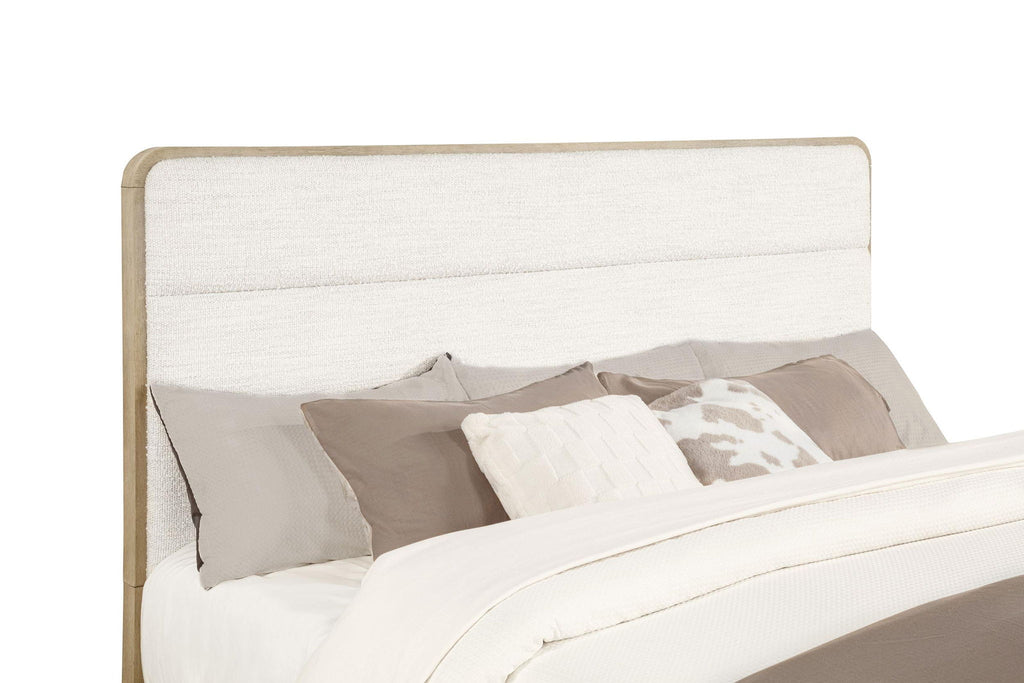 This contemporary panel bed redefines bedroom style with its light elm finish and soft, rounded corners that elevate modern design. The solid wood frame ensures reliable durability, while the cream boucle upholstered headboard adds a plush, teddy bear-soft texture for ultimate relaxation. Designed with understated elegance and practical craftsmanship, this bed is perfect for any home seeking a blend of contemporary aesthetic and lasting quality.