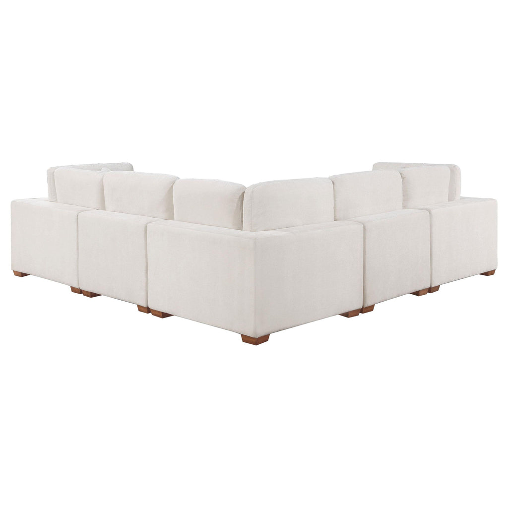 Sink into comfort with a modern, modular sectional sofa with an included ottoman. Plush cushions create exceptional comfort and support, wonderful for lounging or catching up with friends. The sectional displays an on-trend silhouette complete with wide track arms and block feet. The velvety soft upholstery is the perfect choice for a family room, creating a cozy ambiance. Its color palette is modern and versatile, easily complementing a variety of spaces and surrounding decor motifs.
