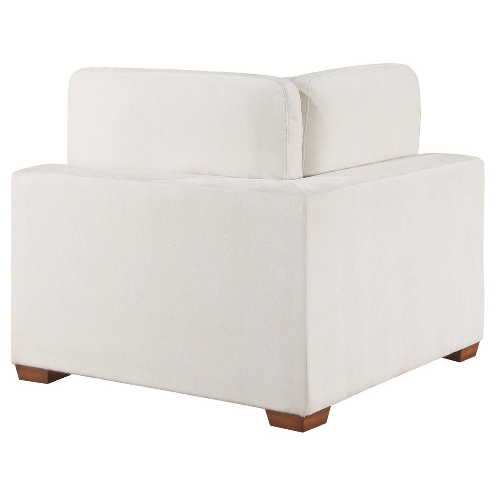 Maximize seating in your modern living room with this stylish corner chair, designed to connect sectional pieces seamlessly. Upholstered in a smooth, soft fabric, this chair provides a cozy spot to relax while maintaining a sleek, contemporary look. The corner design is perfect for anchoring your sectional, creating a cohesive and inviting seating arrangement. With plush cushioning and a durable wood frame, this corner chair offers both comfort and longevity. Its adaptable style makes it an excellent choice for both contemporary and transitional spaces.