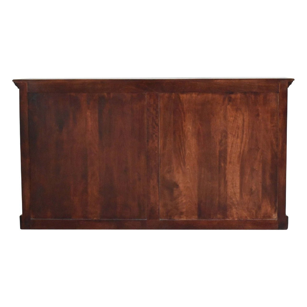 - Large Glazed Sideboard - This sideboard is made from 100% solid mango wood and has a smooth finish. This product offers excellent storage space with 4 drawers and 2 glazed door cabinets as well as a decent size top to place pictures and special ornaments etc. Add this stunning sideboard to your home.