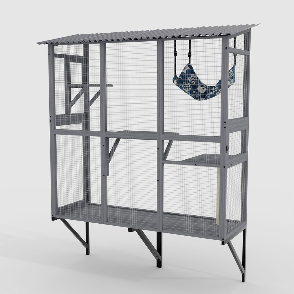 Large Walk In Outdoor Catio For Cats With Roof And 3 Access Doors - Gray