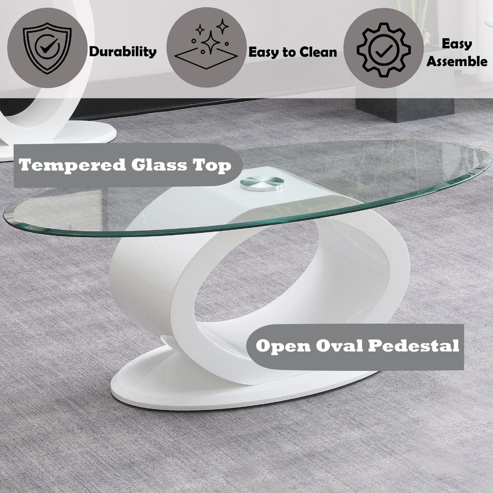 Larry - Coffee Table - Glass Top, White High Gloss Finish 47.0"W x 24.0"D x 18.0"H - 55.0 lb