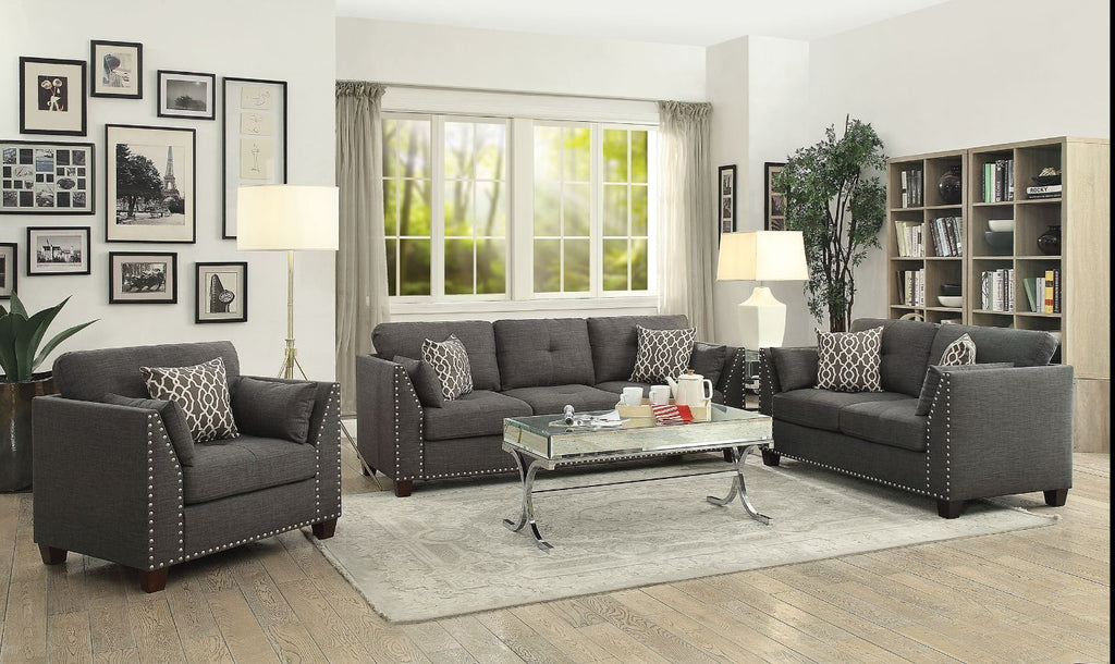 Laurissa - Sofa With 4 Pillows - Light Charcoal Linen