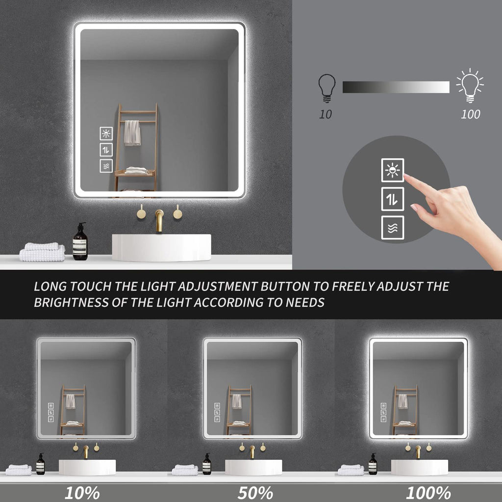 LED Bathroom Vanity Mirror, Anti Fog, Dimmable, Shatter Proof Tempered Glass - Silver