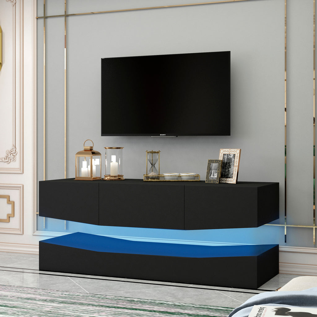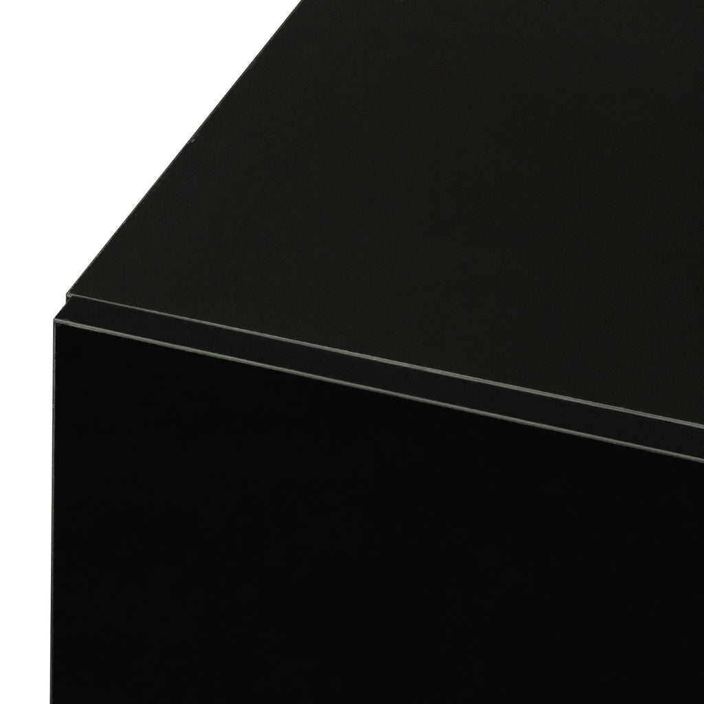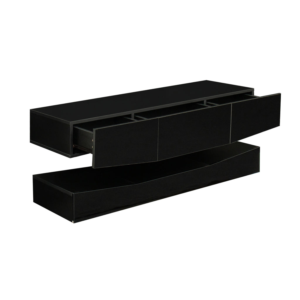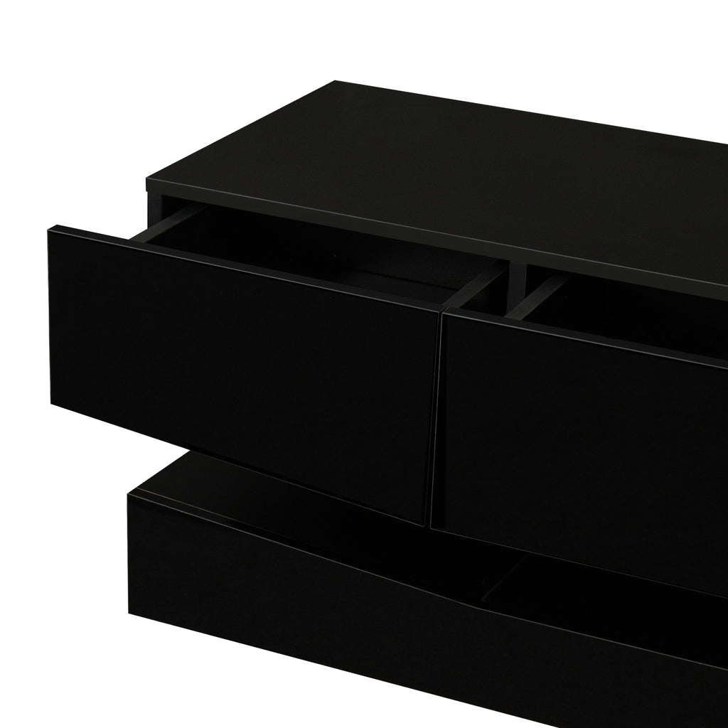 The modern TV stand has a high glossy color that adds dynamic vibrancy to a contemporary, clean-lined design ideal for modern living.