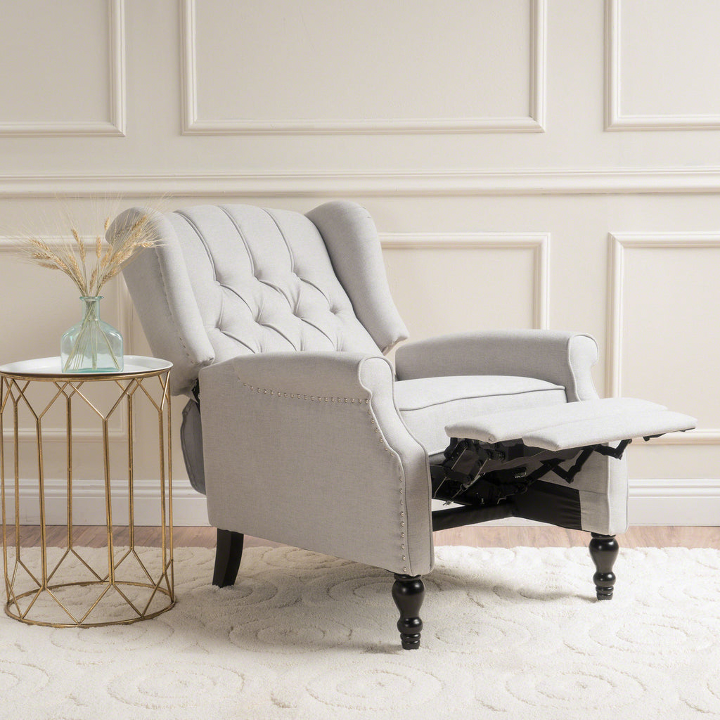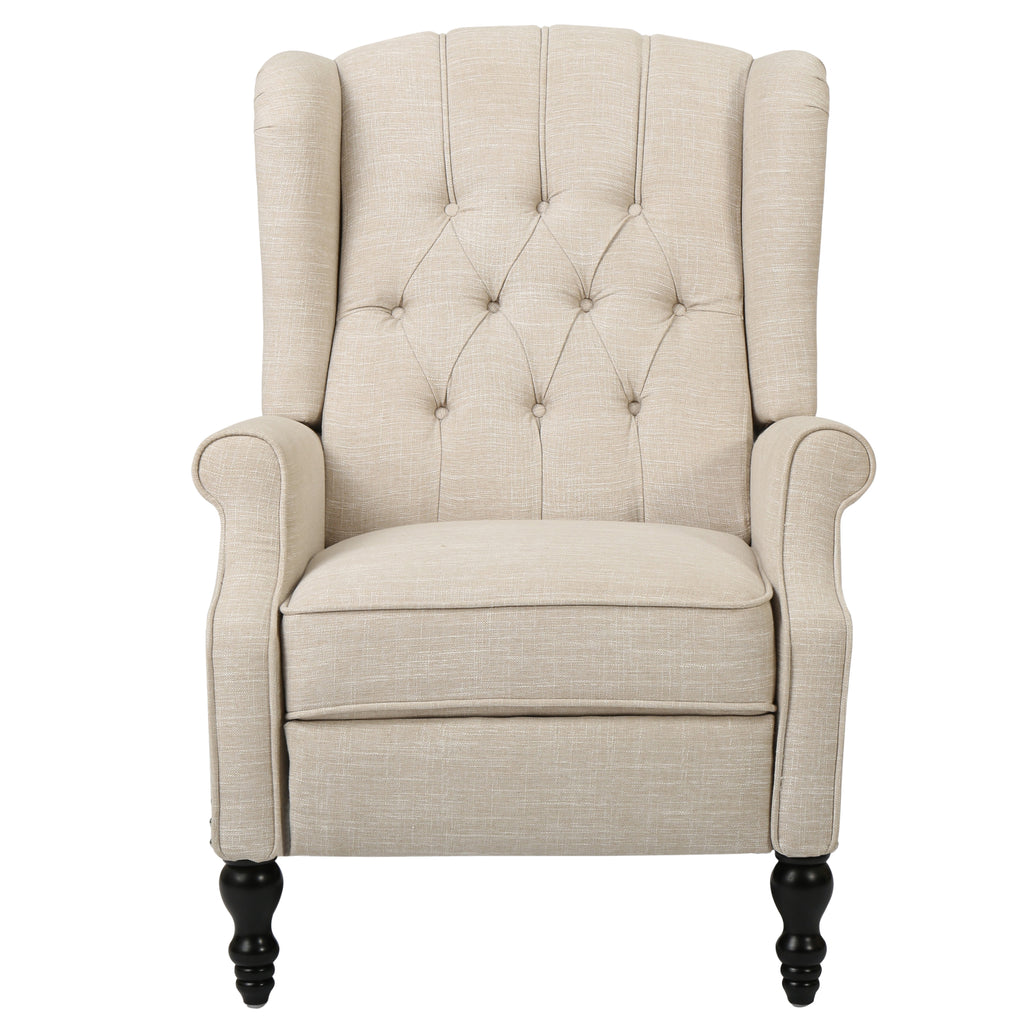 • EASILY RECLINES: Sit back and relax in the Elizabeth Recliner. Simply lean back to recline the chair. A footrest will pop out, offering you a comfortable spot for your feet. Enjoy the highest caliber of comfort and relaxation with this classy, beige recliner.