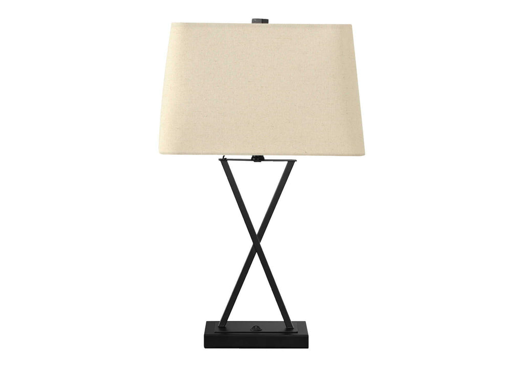 - Transitional Design: This 25-inch table lamp boasts a sleek black metal x-frame that adds flair and style to any living room, bedroom, or office space. It is topped with a chic beige linen rectangular shade, offering a modern yet classic look.