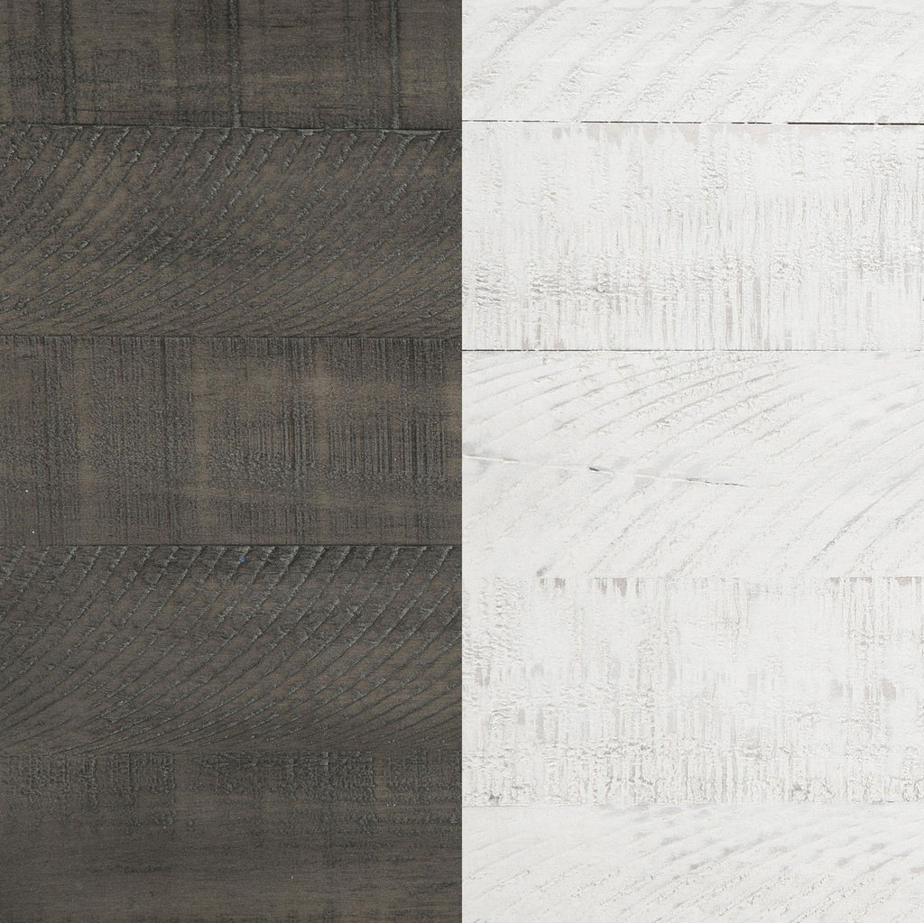 Create a peaceful bedroom retreat with the chic simplicity of a contemporary wooden bed. Clean-lined design takes center stage in the Lilith collection, offering a refined palette in distressed white and gray. Neutral enough for virtually any space, the bed features a classic squared headboard paired with a low footboard, offering a modern silhouette that's perfect for compact spaces. Dark gunmetal finish hardware punctuates the design while delivering the perfect hint of depth and contrast. Made from pine wood and veneer, this bed does require a foundation.