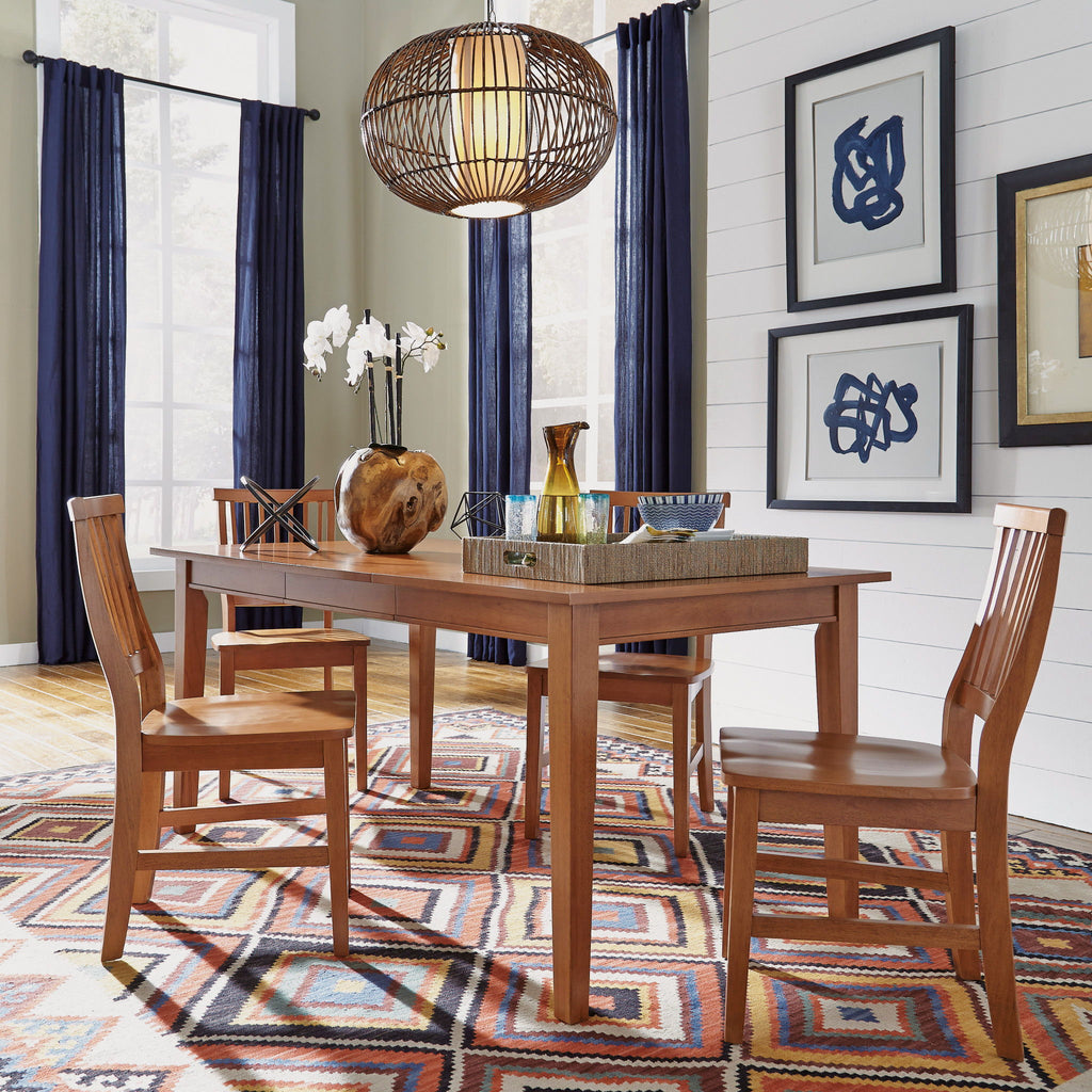 Dine with pride with the Llyod Dining Table by homestyles. Features solid hardwood construction with a rich finish. The set has a minimalistic design, with a large, rectangular table top and tapered chair legs. The table includes a leaf, which can be extended for extra surface space. Table: 30"H x 48"W (66"W with leaf) x 36"D.