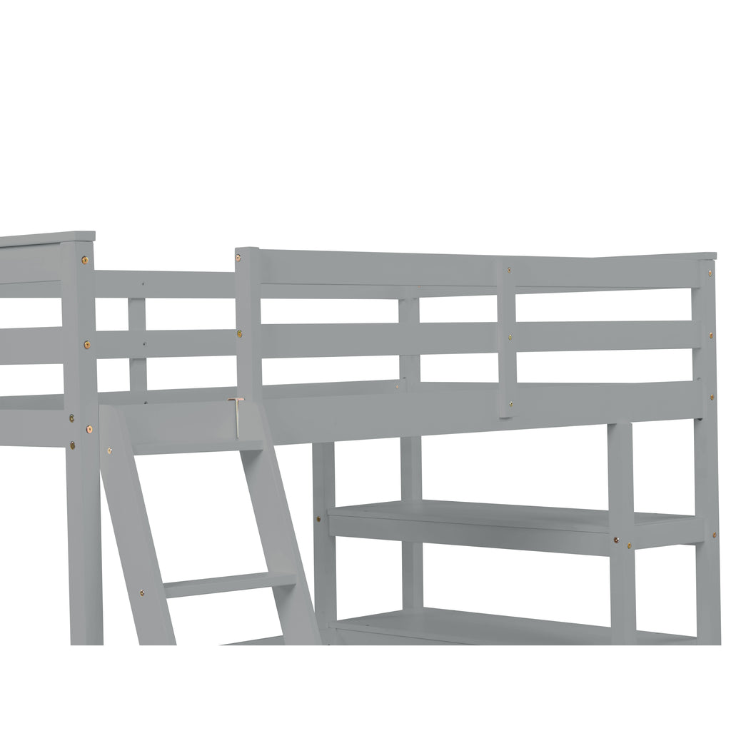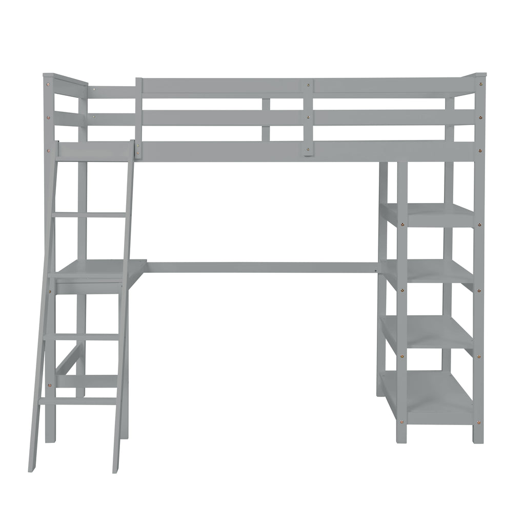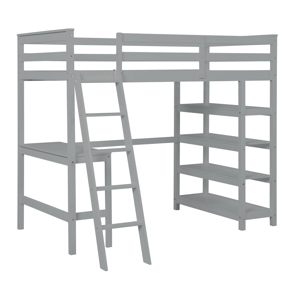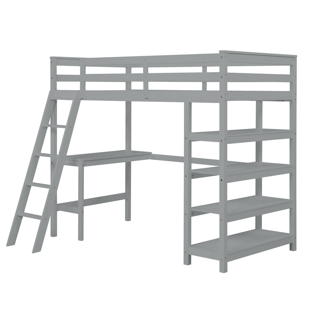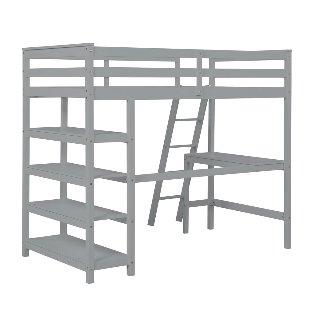 - [Comprehensive Design] The feature of this loft bed not only ensures better sturdy construction, but also reduce safety concerns, the desk offering the kids a quiet ,cozy place for reading and writing . In addition, the inclined ladder against the upper bunk is designed with a safe and wider width to provide more spacious steps and solid support, making it easier for you to climb up and down the ladder