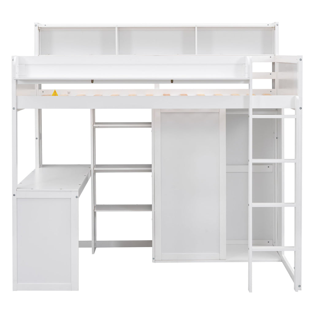 Twin Size Loft Bed With Built In Desk, Storage Shelves, And Wardrobe - White