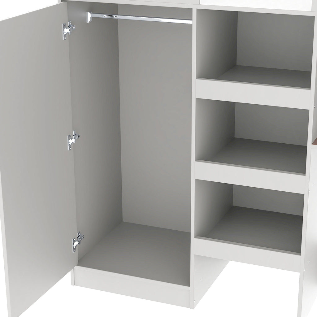 Full Size Loft Bed With Built In Wardrobe, Desk, Shelves, And Drawers - Gray