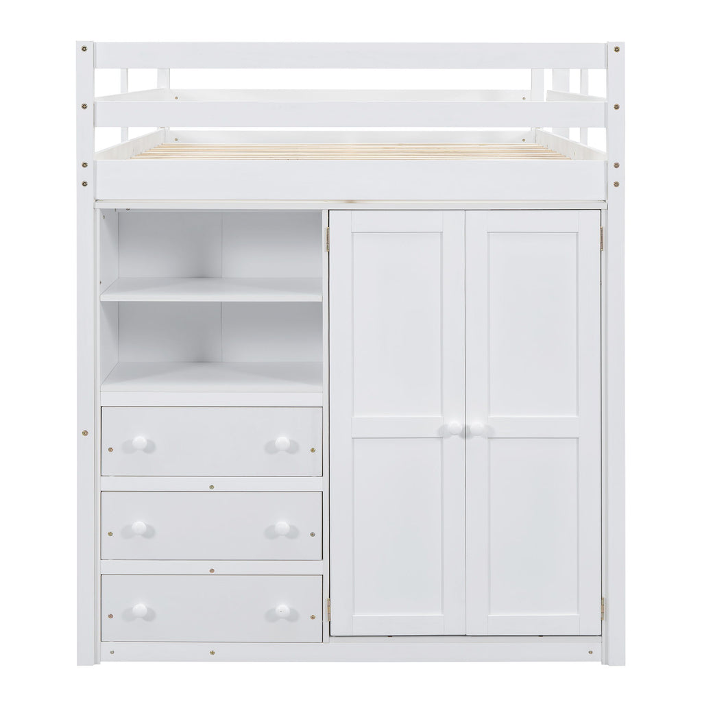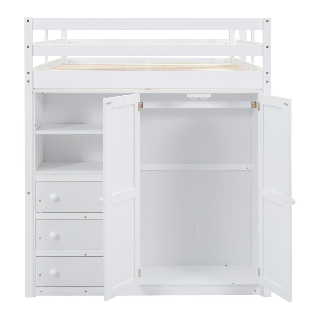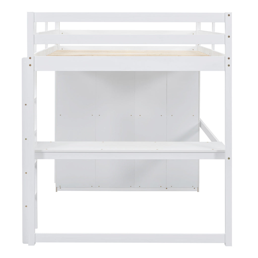 Full Size Loft Bed With Built In Wardrobe, Desk, Shelves, And Drawers - White