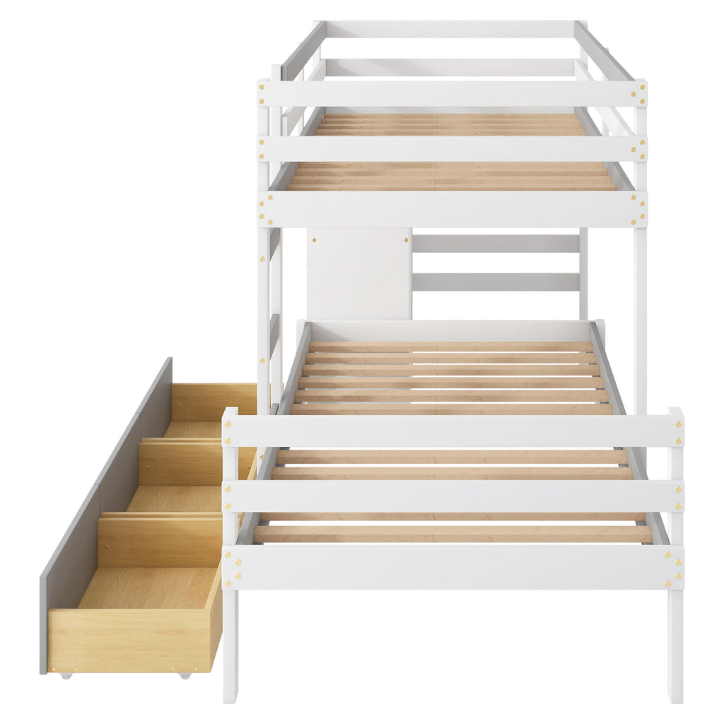 Twin Over Twin Loft Bunk Bed With Drawers And Ladder - Gray