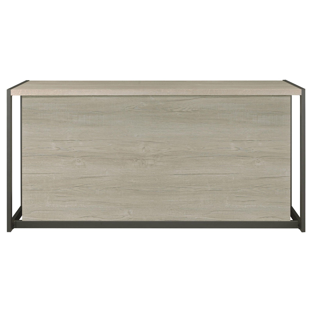 Elevate your contemporary home office and organize your supplies with this spacious contemporary office desk, featuring a light and bright whitewashed grey finish that maintains a clean look and feel to the space. Four drawers, including a deep file drawer, allow you to organize important documents, fastened with gunmetal finished pulls that coordinate with the grey finished sled style base.