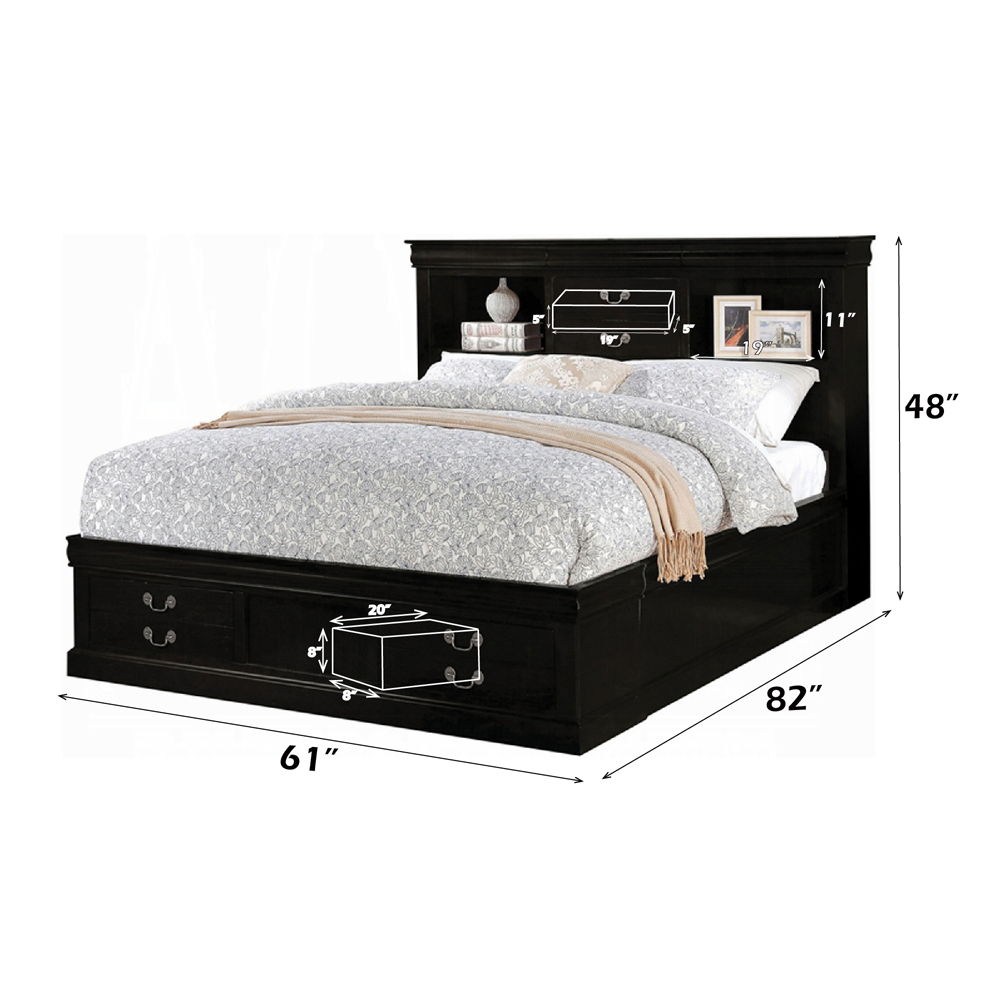 Louis Philippe III - Queen Bed With Storage - Black 61.0"W x 82.0"D x 48.0"H - 184.0 lb