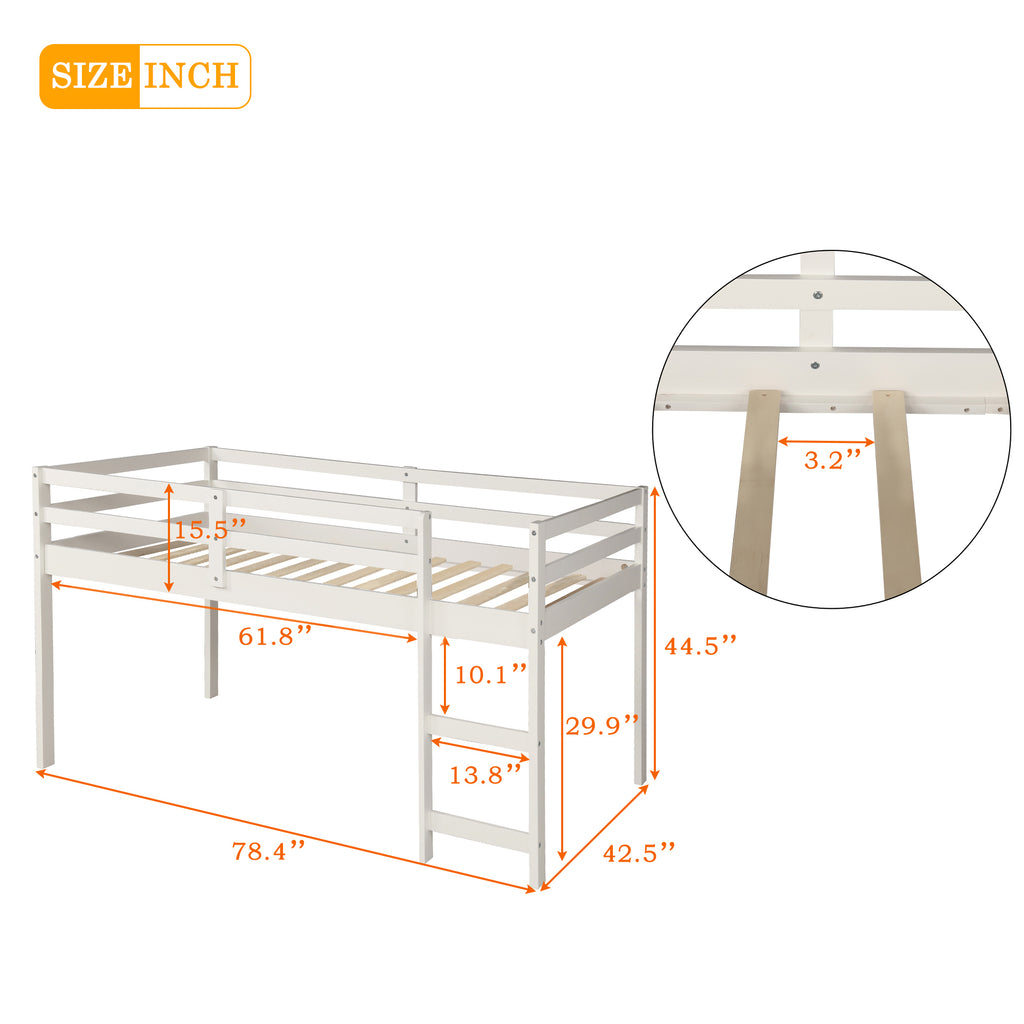 Dimensions: Loft Bed - 78.4"x 42.5" (L x W). . Mattress not included. Some assembly is required, although we have provided clear instructions and tools.