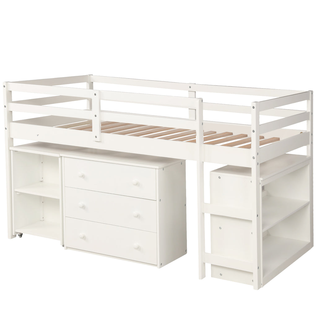 Low Study Twin Loft Bed with Cabinet and Rolling Portable Desk - White (OLD SKU :LP000113AAK)