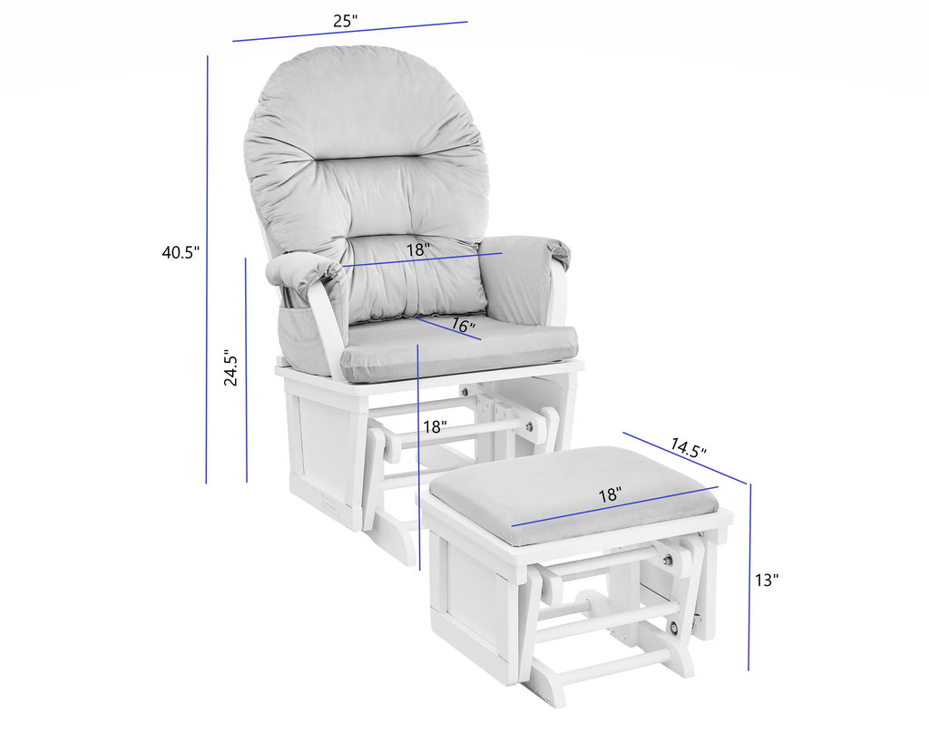 - Stylish design: Madison Glider and Ottoman in Gray Wood and Light Gray Fabric.