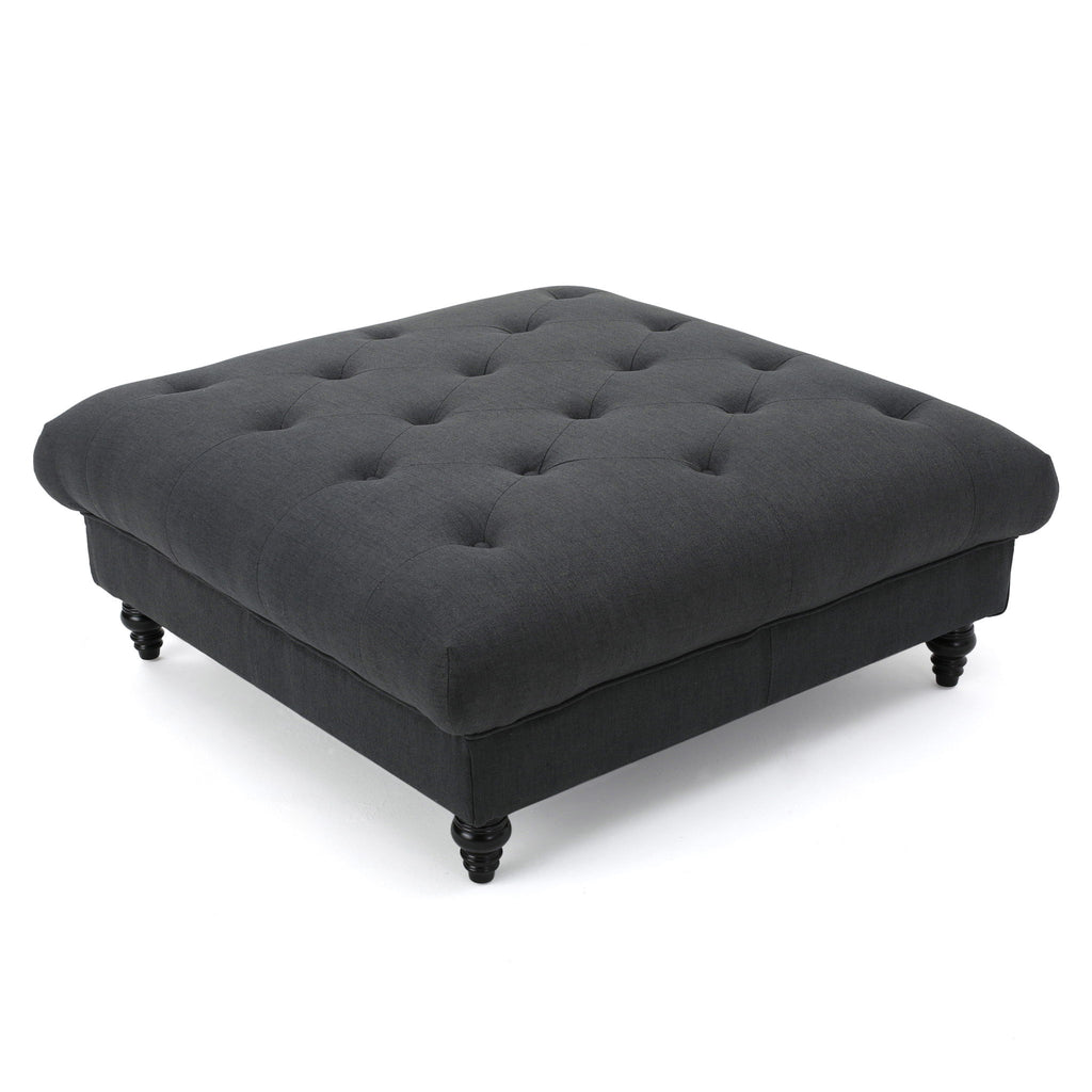 Madrid - Tufted Ottoman With Button Tufting And Turned Feet - Dark Gray