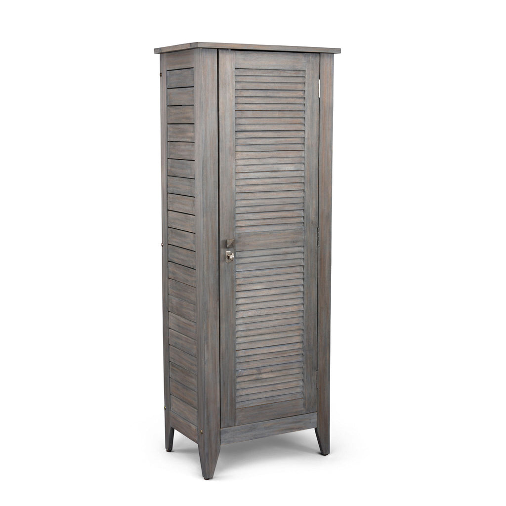 This solid acacia cabinet is highlighted by a teak finish and sealed with linseed oil that brings out the natural beauty of the wood. Three adjustable shelves let you customize the space to your needs.