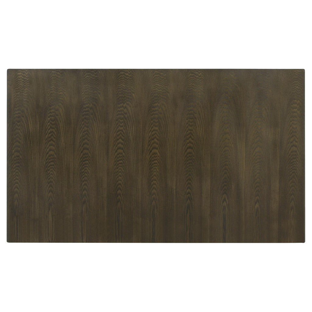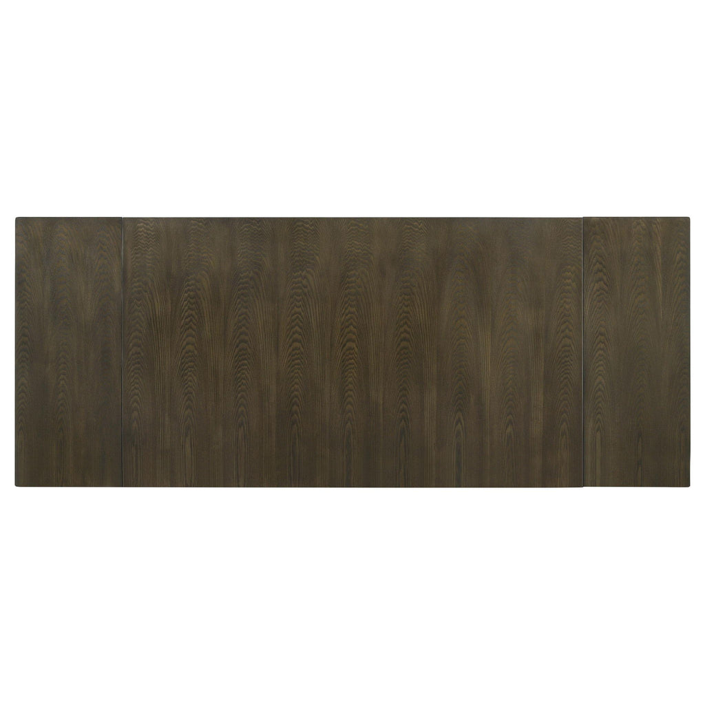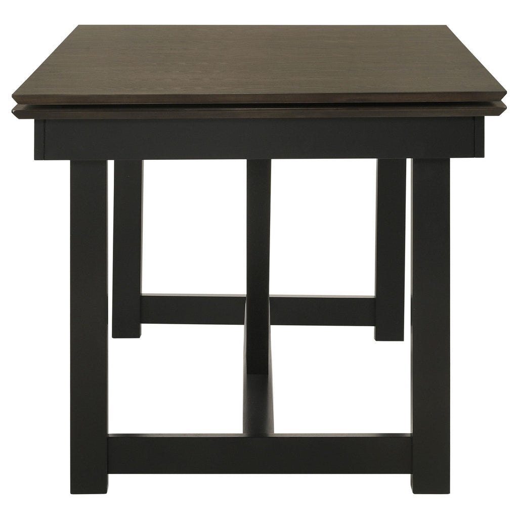 Embrace the timeless appeal of transitional style with our sleek dining table. The two-tone oak and black trestle base effortlessly enhance any décor, creating a stylish focal point. Hidden pop-up refractory extension leaves provide convenient hosting flexibility, allowing you to accommodate more guests with ease. Elevate your dining experience with this versatile and elegant table, designed to meet both your aesthetic and practical needs.