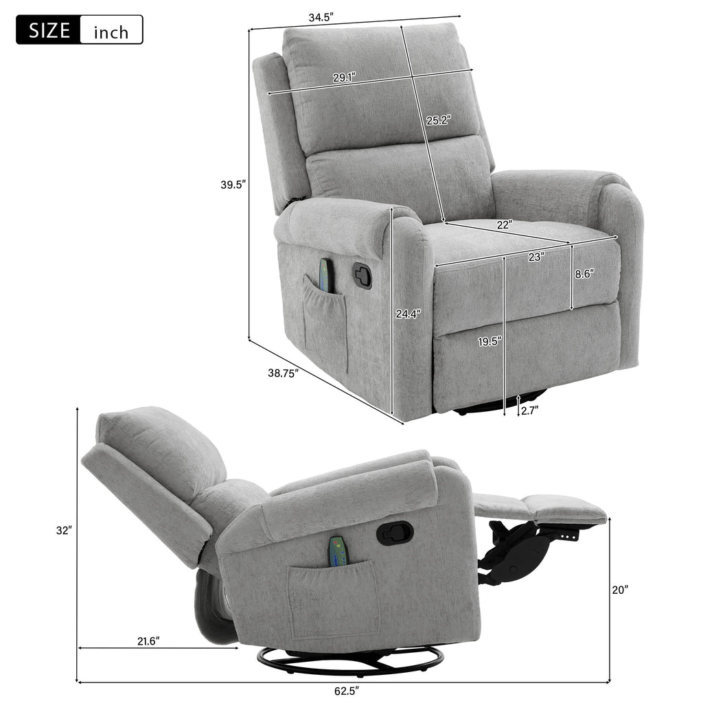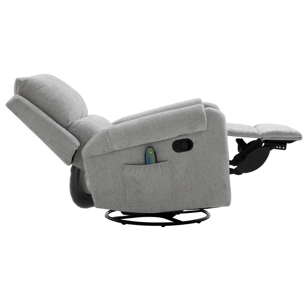 Manual Recliner Massage Chair With Swivel Rocker, 8 Massage Modes, Side Storage Pocket - Gray