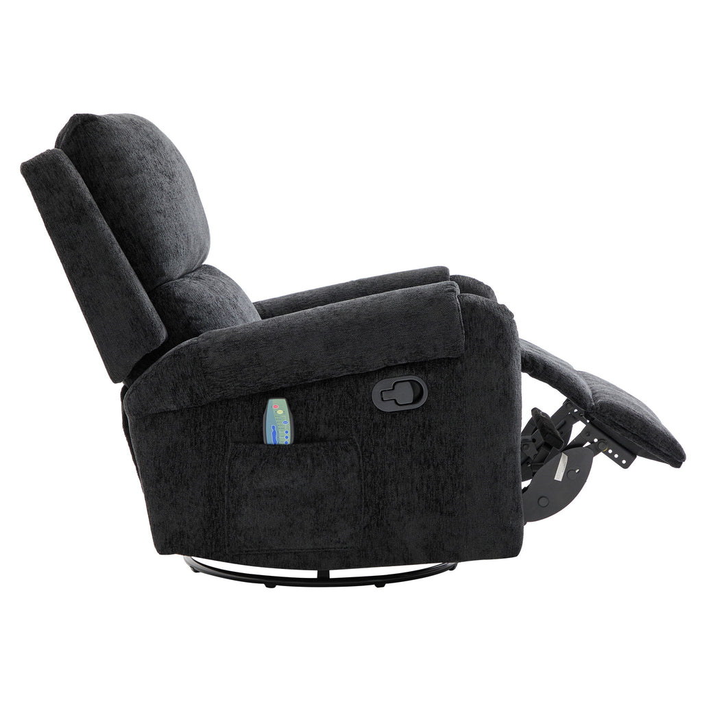 Manual Recliner Massage Chair With Swivel Rocker, 8 Massage Modes, Side Storage Pocket - Black