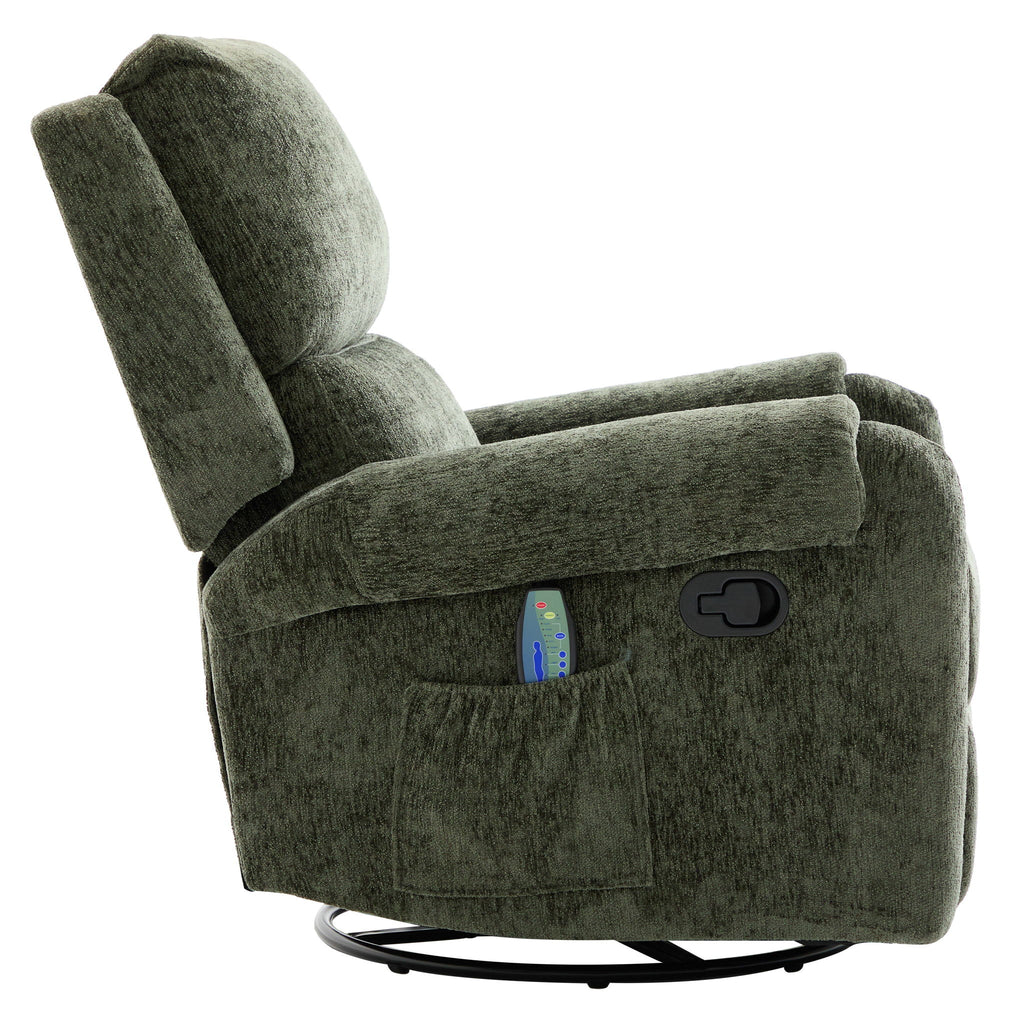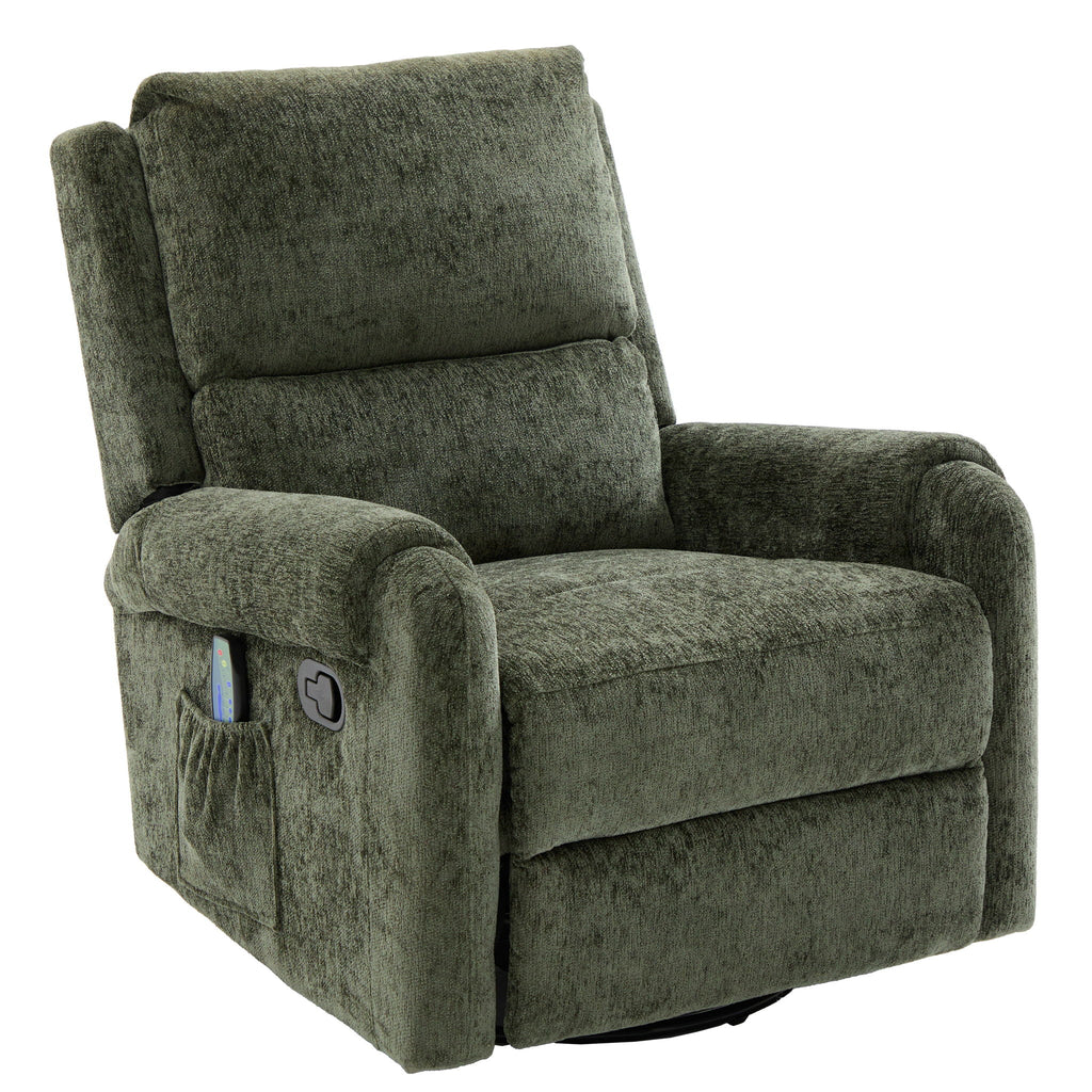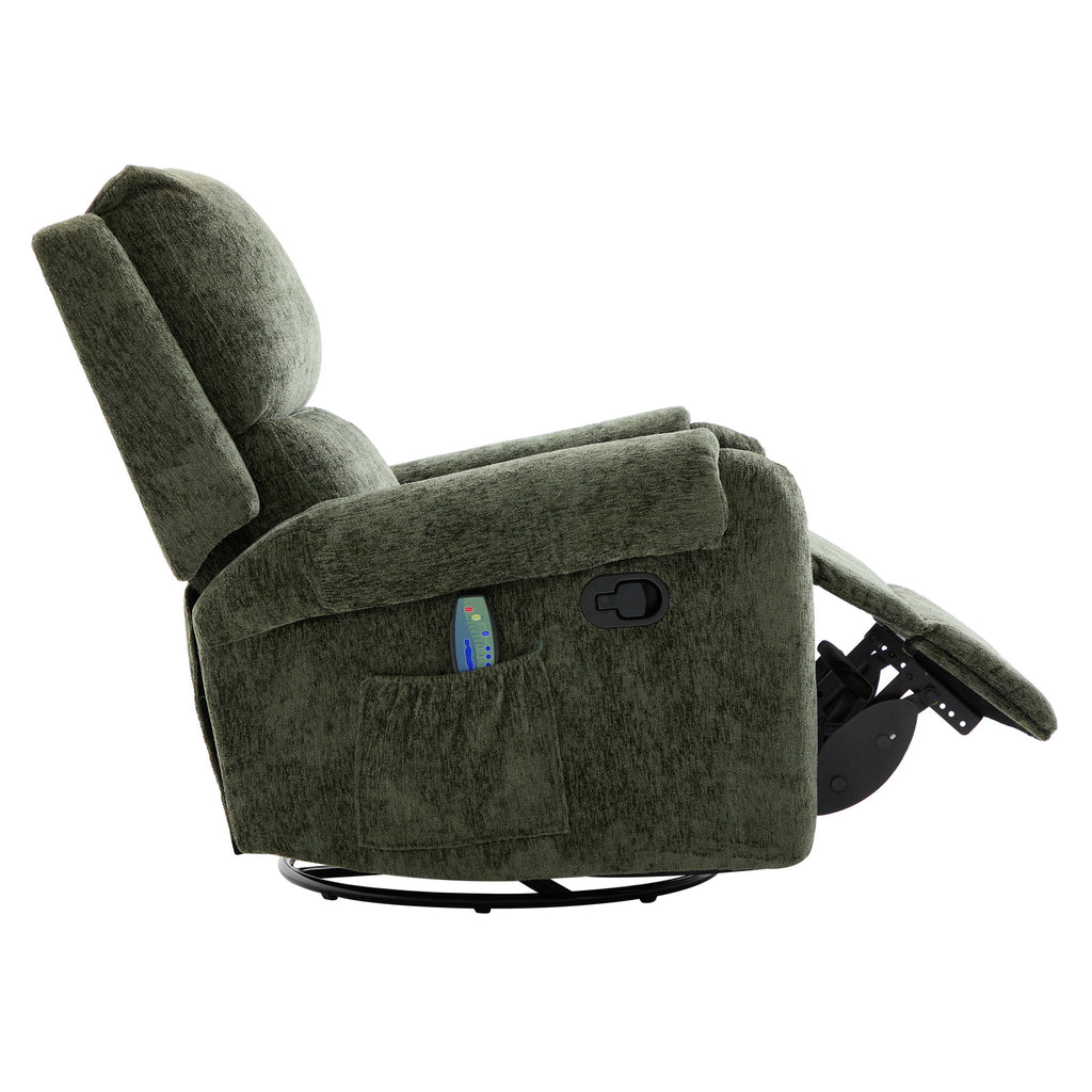 Manual Recliner Massage Chair With Swivel Rocker, 8 Massage Modes, Side Storage Pocket - Green