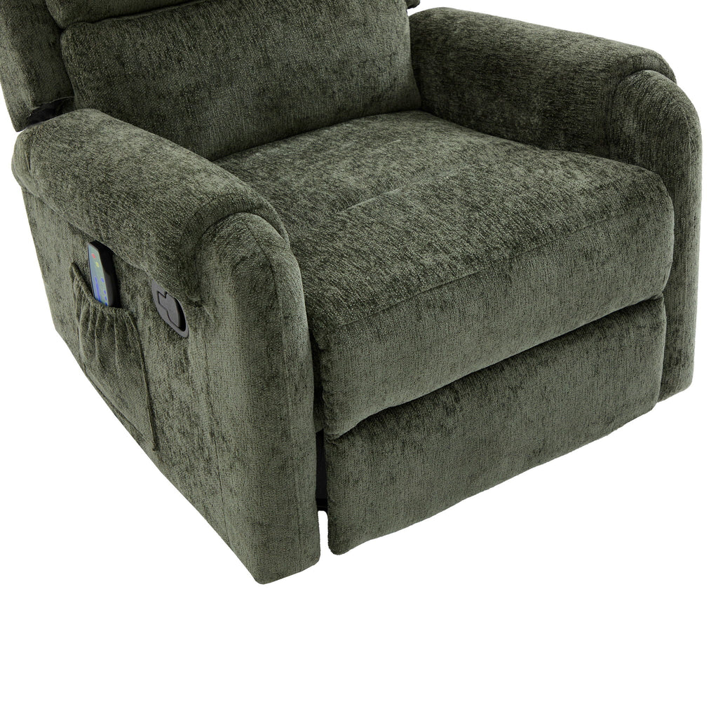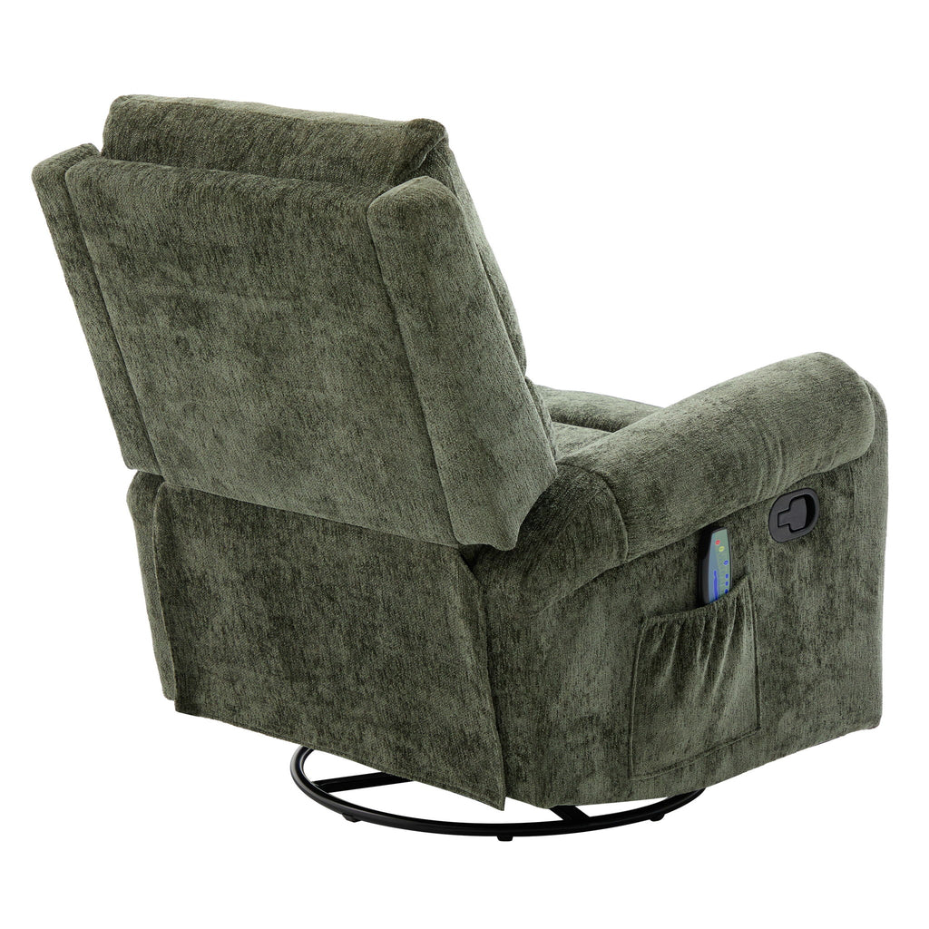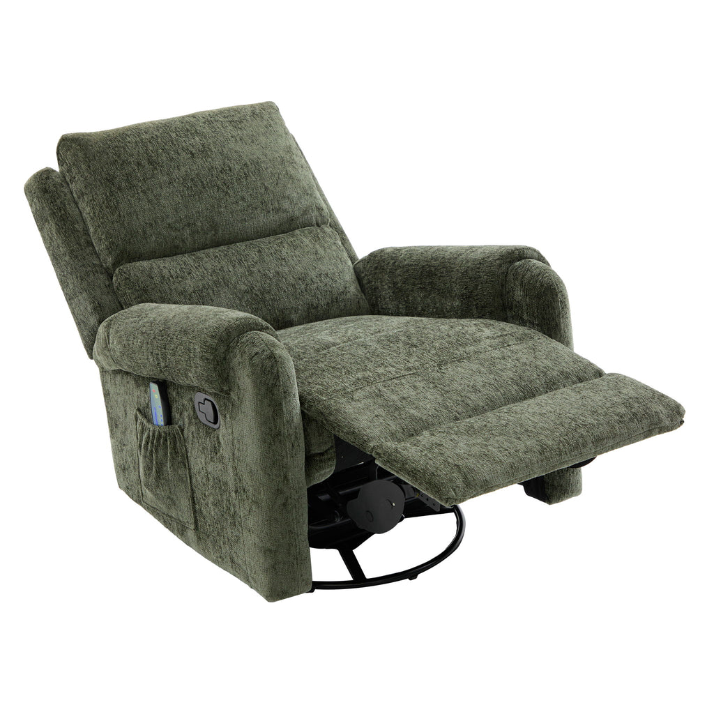 Manual Recliner Massage Chair With Swivel Rocker, 8 Massage Modes, Side Storage Pocket - Green
