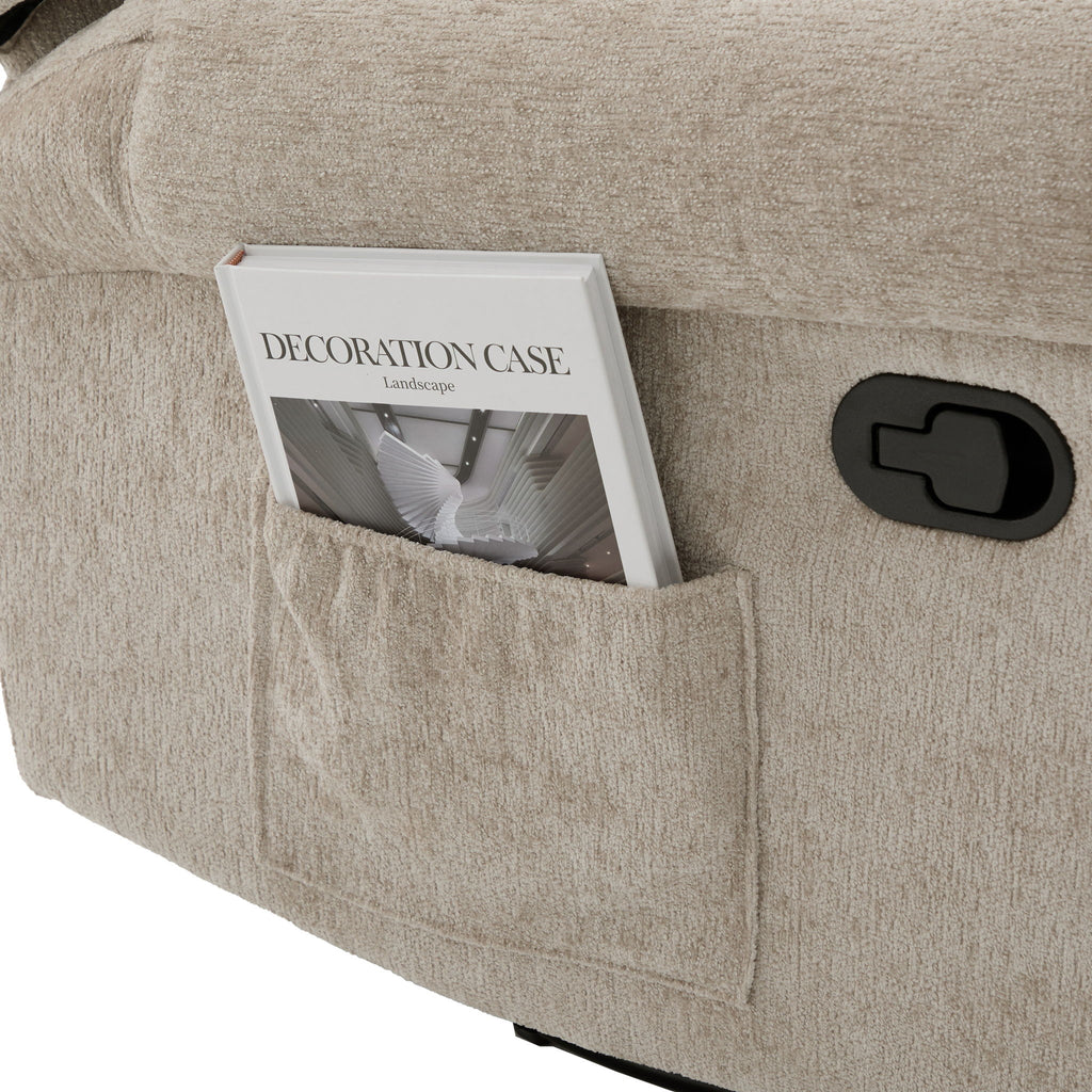 - Side Storage Pocket: Convenient left-side pocket for storing remotes, books, or personal items