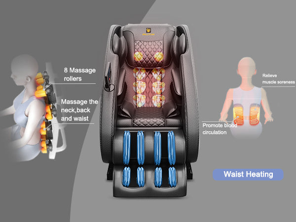 - 【Full Body Massage】:The 8 fixed rollers on the back massage the backrest, back and waist. Air bags on shoulders, arms, hips and calves inflate or deflate to relieve tension and muscle fatigue. Pressing the 'zero gravity' button and leaning fully back with your feet higher than your heart lightens the load on your heart for a better experience.