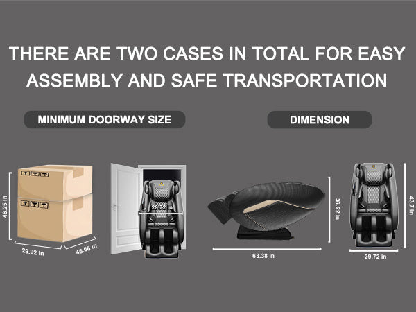 - 【Reasonable Packing】:The massage chair adopts one boxes of packaging, which reduces the volume of the product and the weight of a single package, reduces the possibility of problems in the transportation process, and makes the product more convenient and safe. The full body massage chair can accommodate up to 180 pounds and 6.1 feet tall.