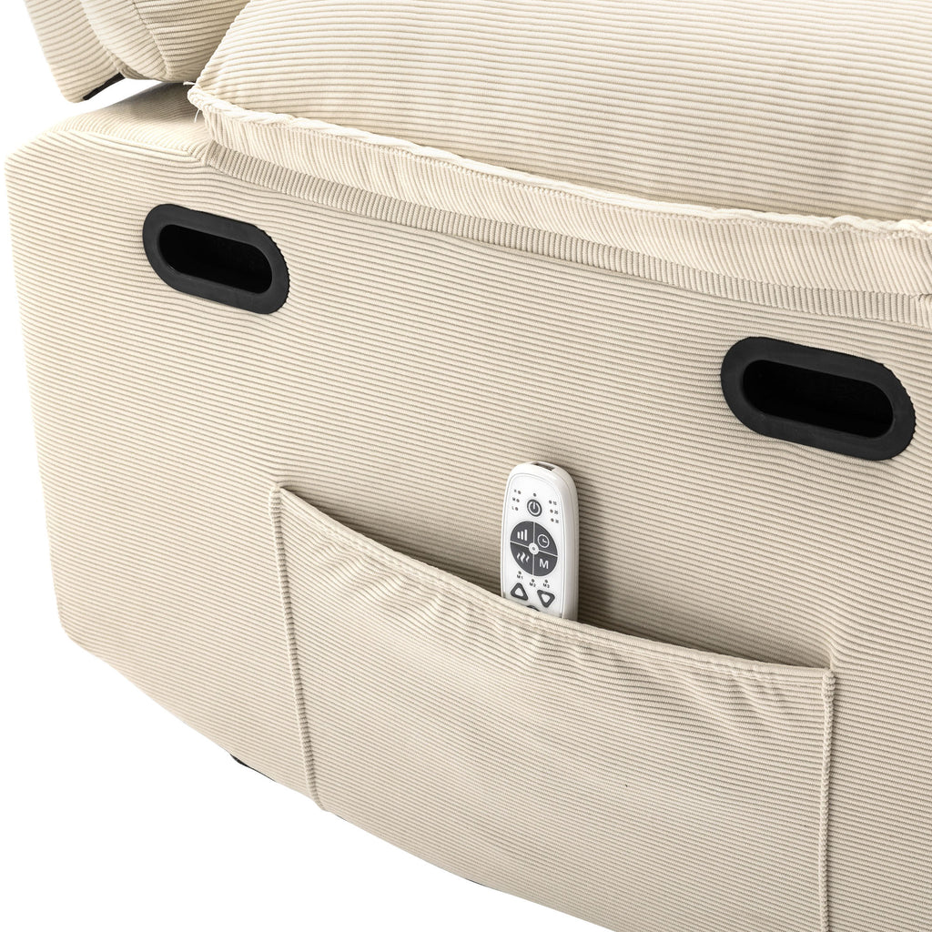 - Massage and Lumbar Heat Functions - The recliner chair has 8 massage nodes and 3 massage modes that you can control separately. You can set the timer for 10/20/30 minutes. The lumbar heat point helps your blood flow and relaxes your body.